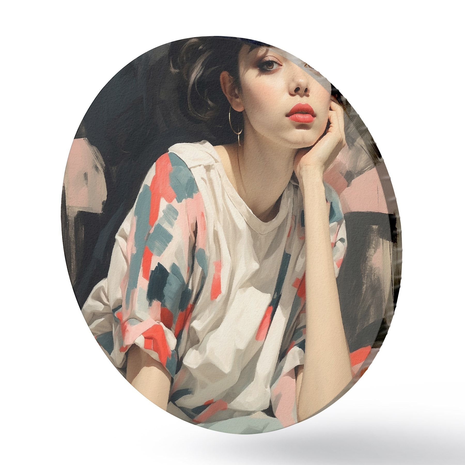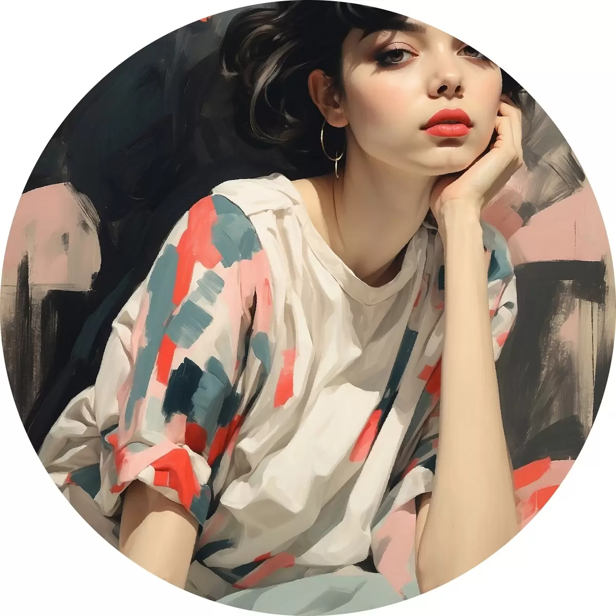 Nuotrauka Mergaitės portretas fone su akimis ir abstrakčiais potėpiais Nr r45623