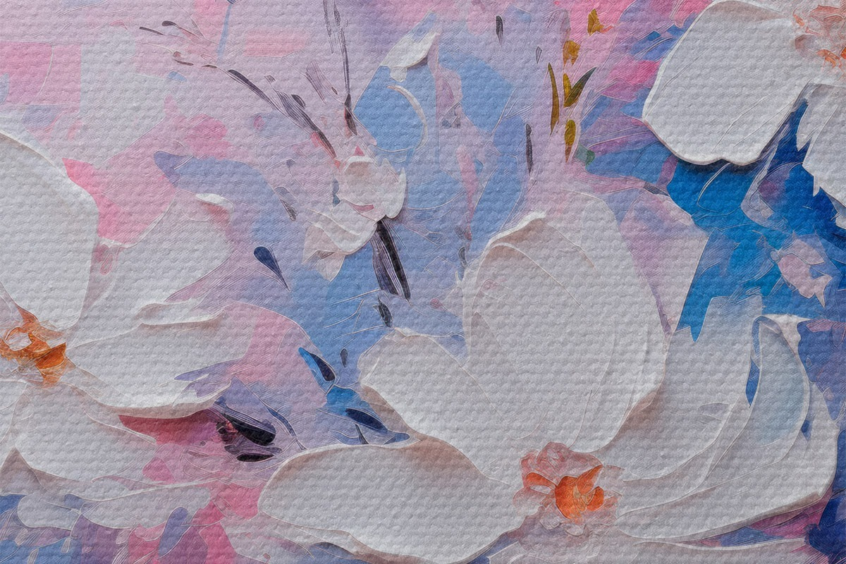 Nuotrauka Tūrinės gėlės mėlyname fone impasto stiliumi Nr r45648
