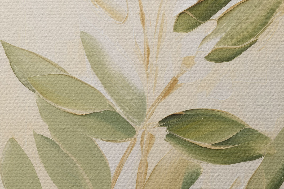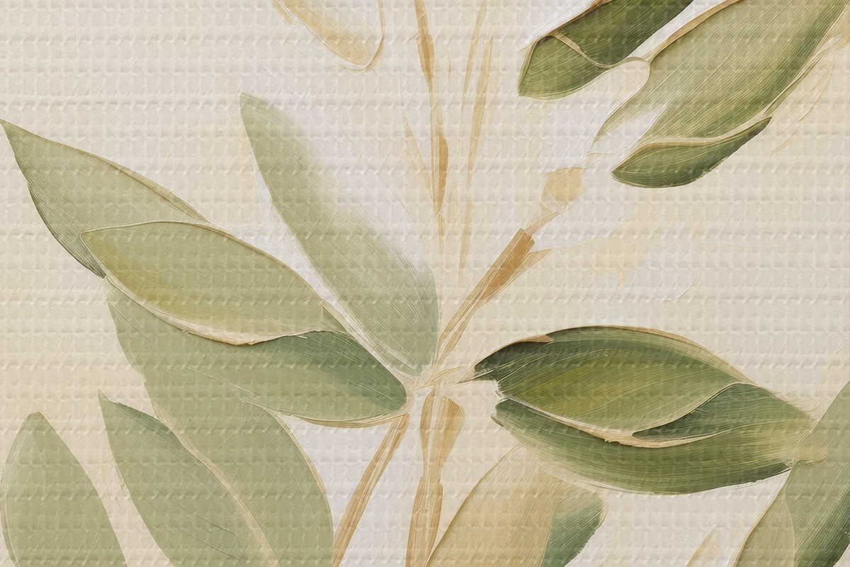 Nuotrauka Šaka su žaliais lapais šviesiai smėlio spalvos fone Nr r45689