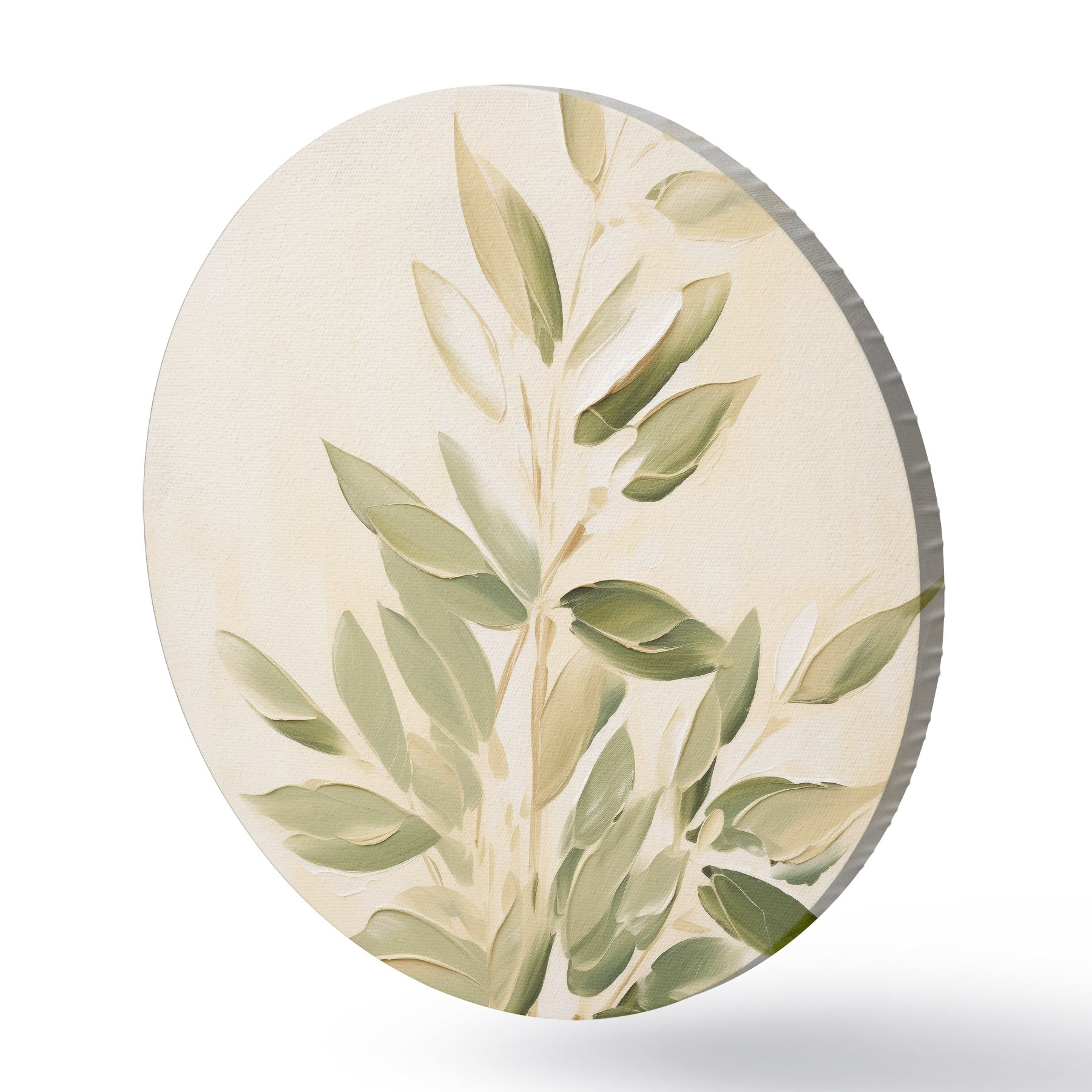 Nuotrauka Šaka su žaliais lapais šviesiai smėlio spalvos fone Nr r45689