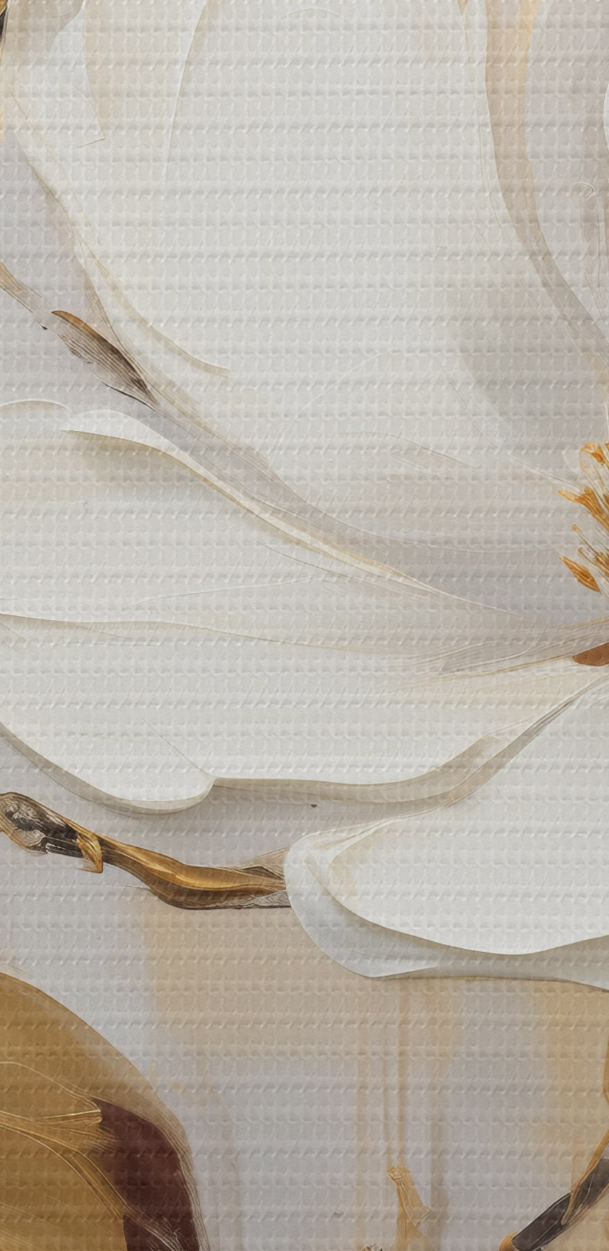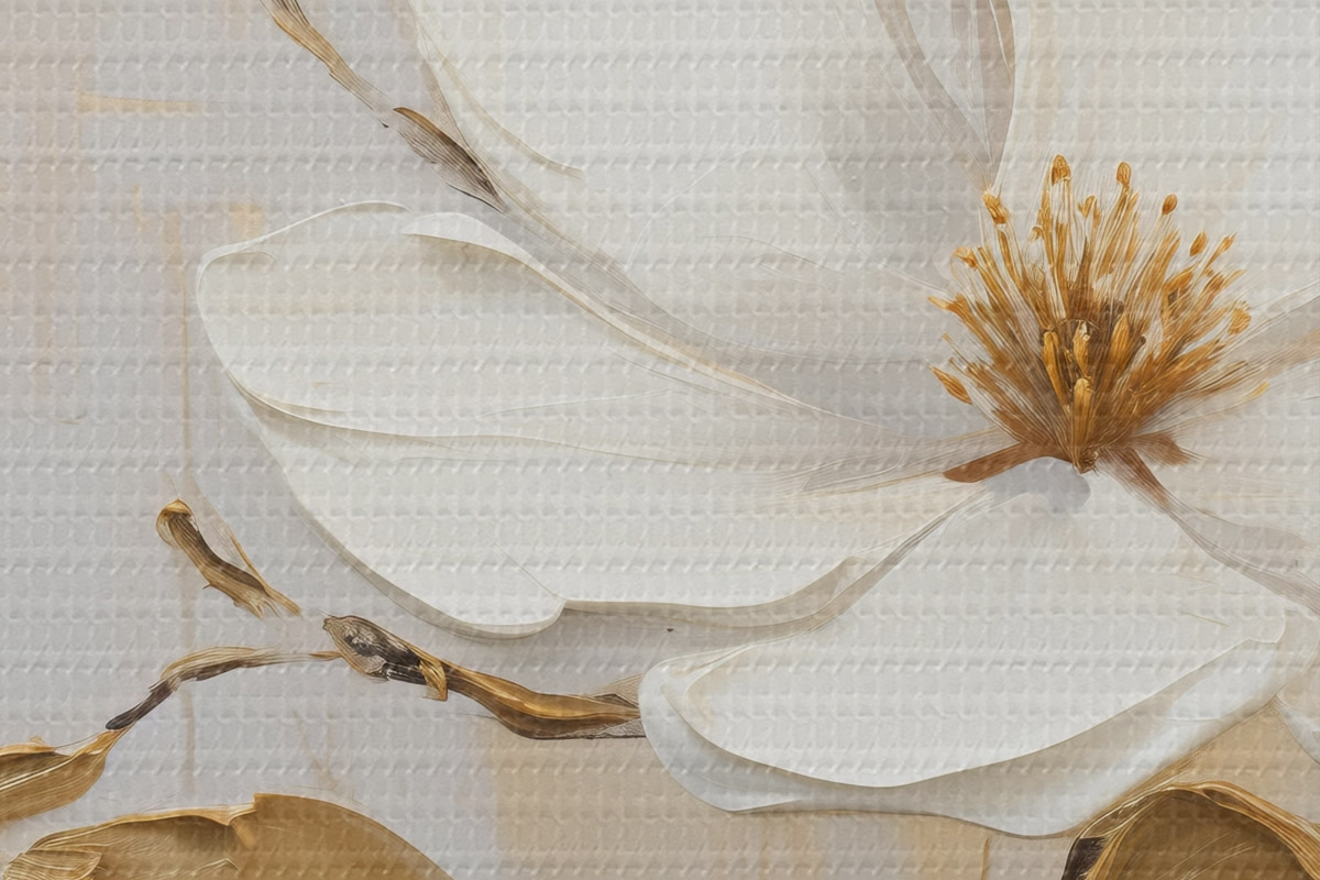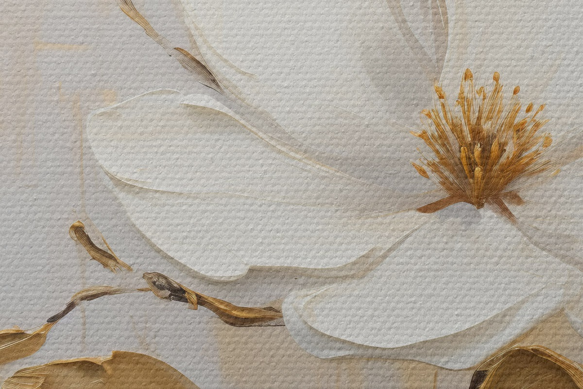 Nuotrauka Dvi baltos gėlės su geltonai oranžiniais lapais šviesiame fone Nr r45691