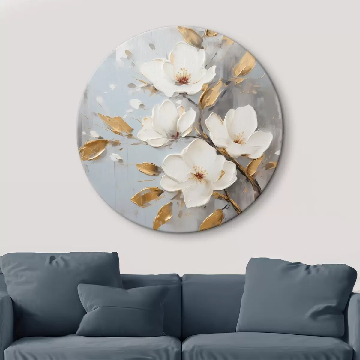 Nuotrauka Šaka su baltais žiedais ir geltonai oranžiniais lapais Nr r45692