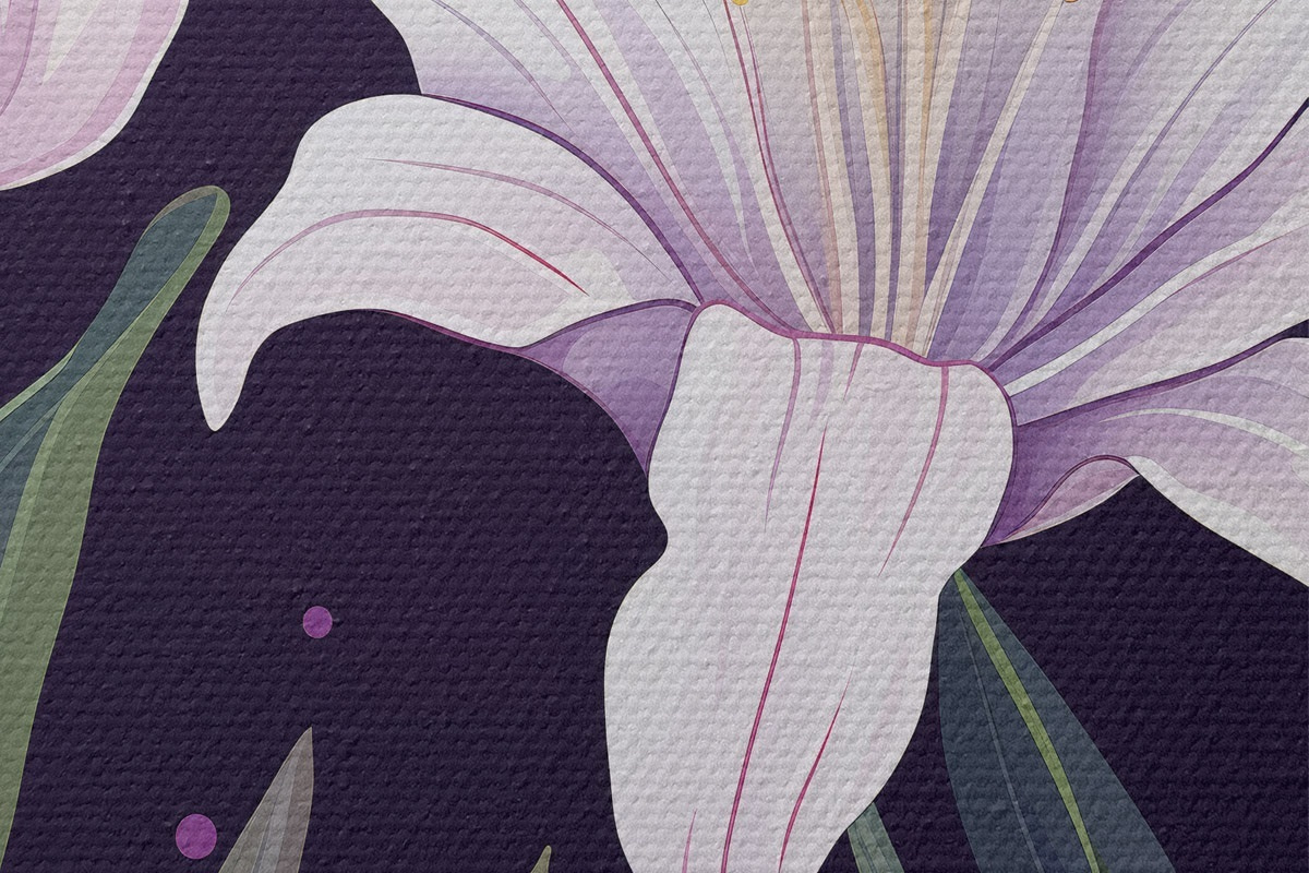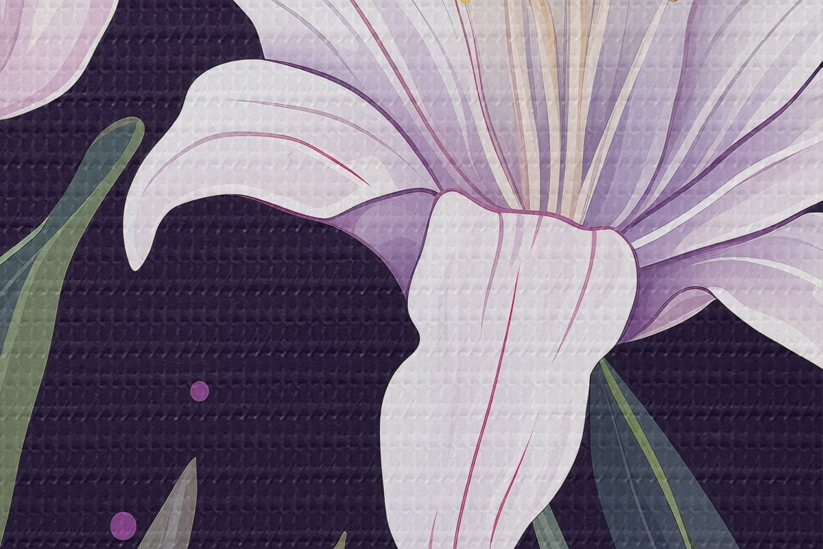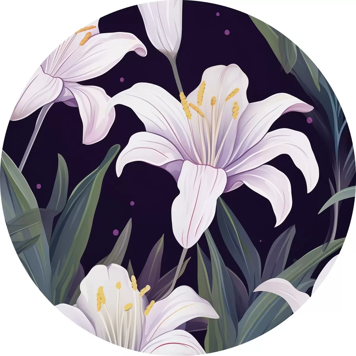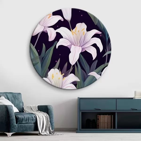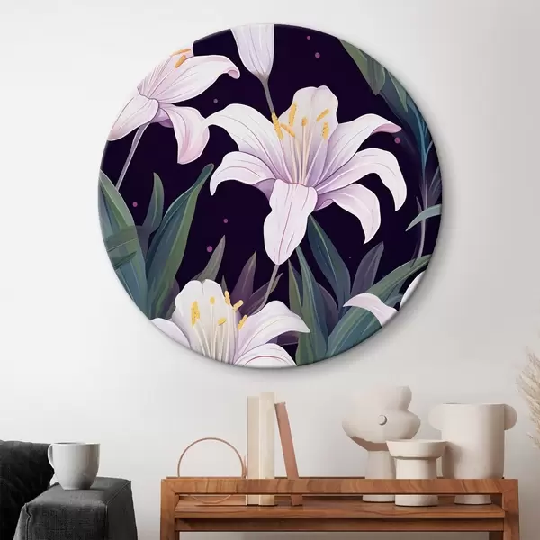 Nuotrauka Švelnios lelijos tamsiame fone su žaliais lapais Nr r45697