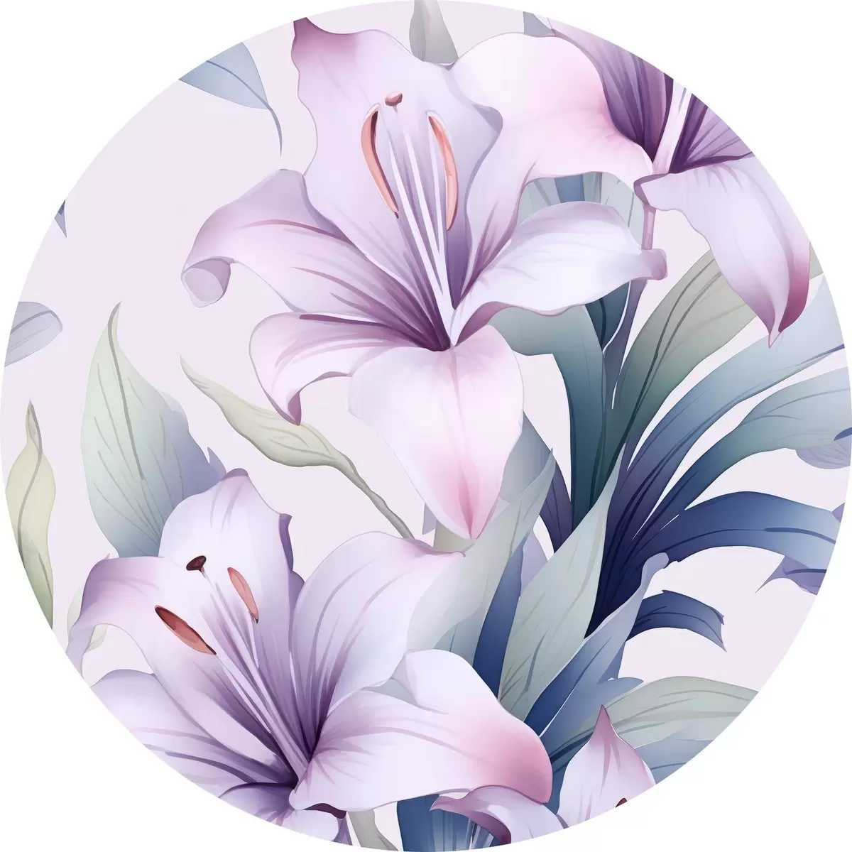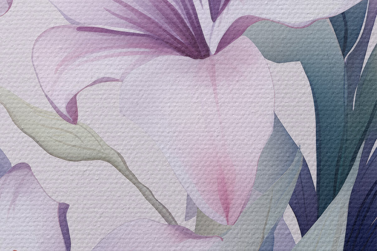 Nuotrauka Didelės rausvai violetinės lelijos su žaliais lapais Nr r45698