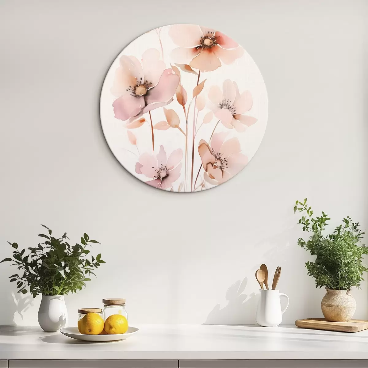 Nuotrauka Akvarelinės rožinės gėlės ant plonų stiebų Nr r45701