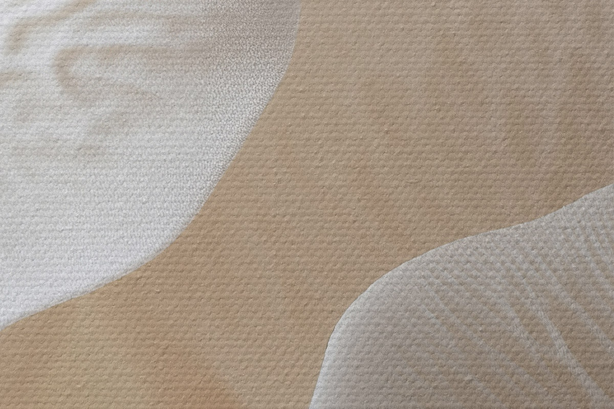 Galima užsakyti trijų rūšių medžiagą: "Economic Canvas" - tanki ir patvari medžiaga skaitmeninei spaudai, identiška dailininko drobės medžiagai, vandeniui atsparus paviršius, tikroviškas detalių atkūrimas, vidutinio grūdėtumo medžiaga. Premium Canvas - tekstūra primena dailininko drobę (susipynę smulkūs siūlai). Minkštas, detalus vaizdo atkūrimas ant matinio paviršiaus. Eco-Premium - aukštos kokybės 100 % medvilninis audinys. Dėl natūralių medvilnės pluoštų medžiaga yra patvari ir atspari nusidėvėjimui. Puikus spalvų atkūrimas ir detalumas.