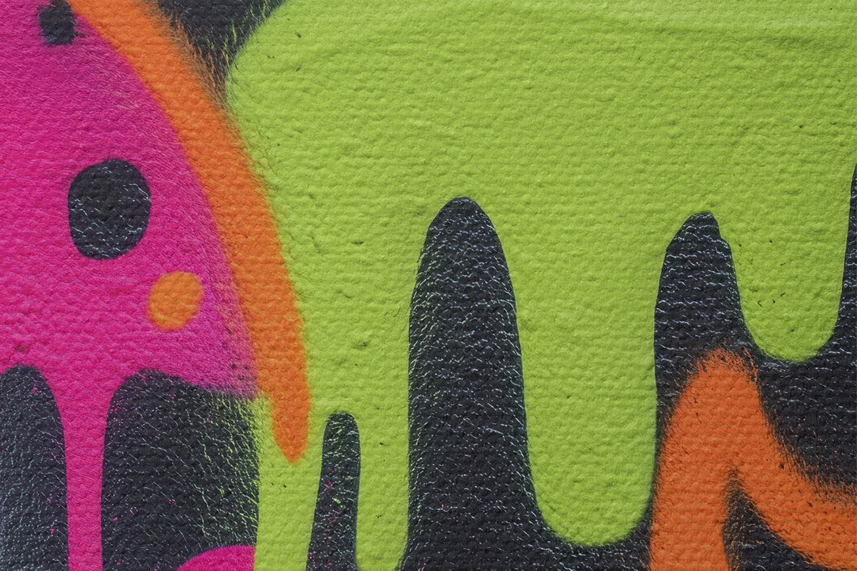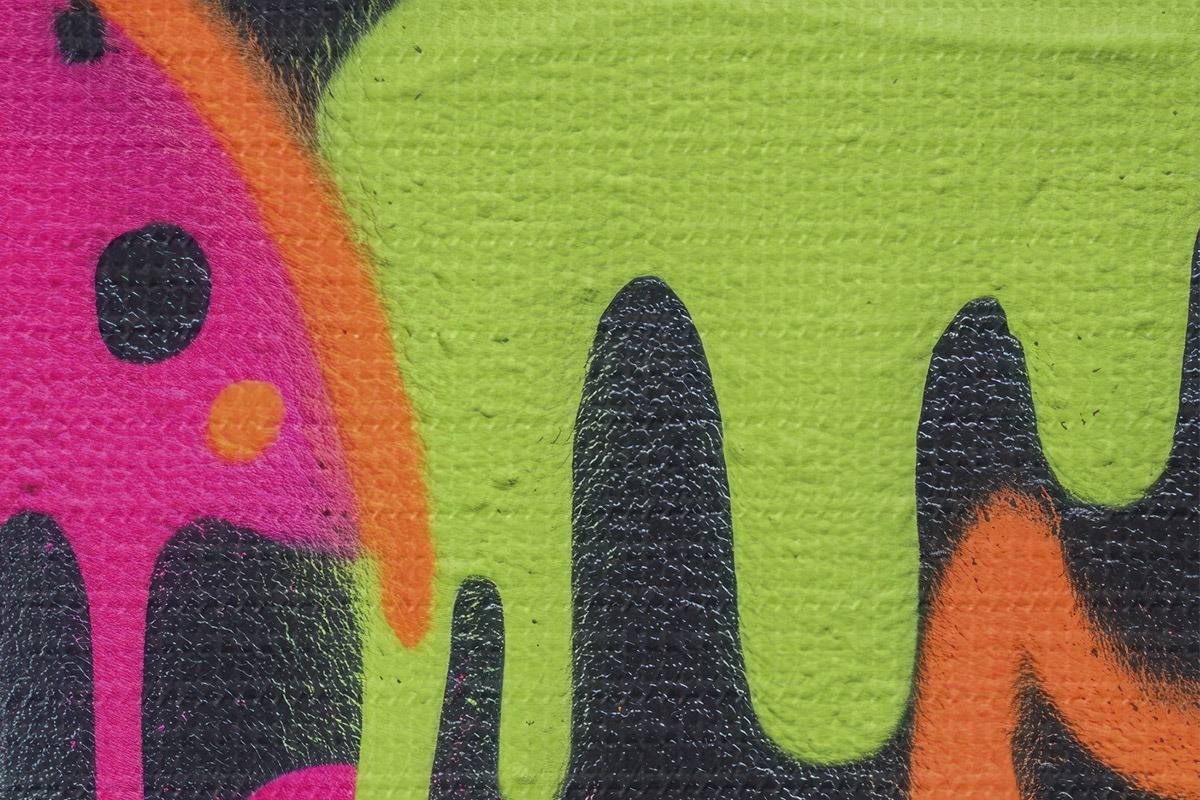 Nuotrauka ryškūs gatvės grafičiai ant tamsaus fono Nr r45716