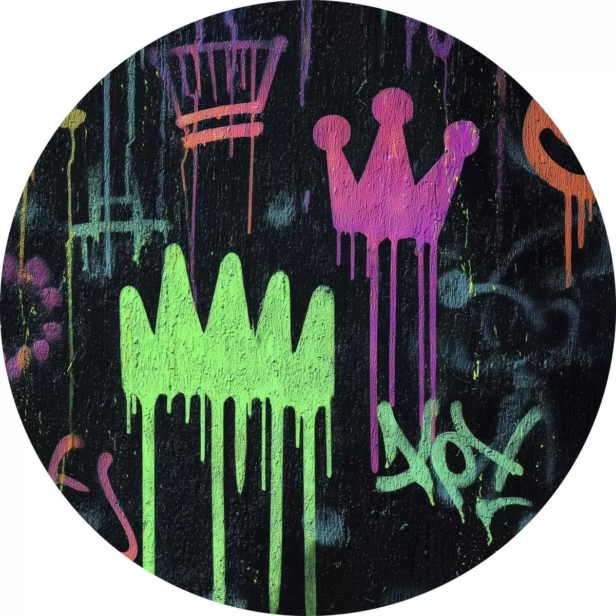 Nuotrauka ryškūs gatvės grafičiai ant tamsaus fono Nr r45718