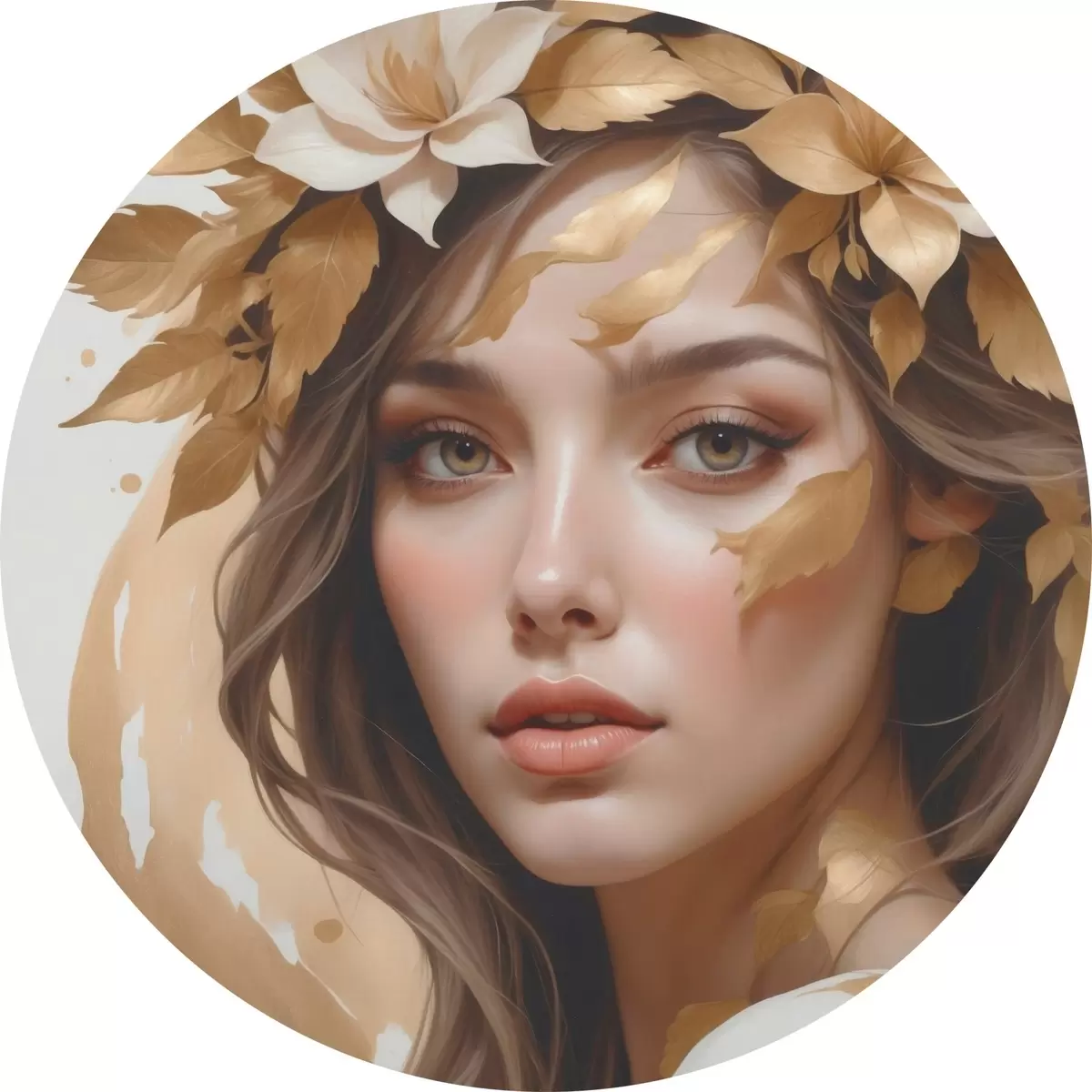 Nuotrauka Moteris su lapais plaukuose Nr r45748