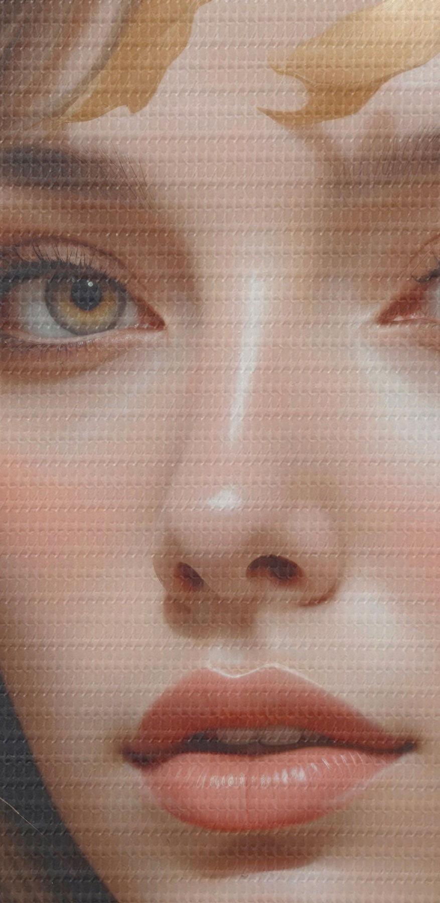 Galima užsakyti trijų rūšių medžiagą: "Economic Canvas" - tanki ir patvari medžiaga skaitmeninei spaudai, identiška dailininko drobės medžiagai, vandeniui atsparus paviršius, tikroviškas detalių atkūrimas, vidutinio grūdėtumo medžiaga. Premium Canvas - tekstūra primena dailininko drobę (susipynę smulkūs siūlai). Minkštas, detalus vaizdo atkūrimas ant matinio paviršiaus. Eco-Premium - aukštos kokybės 100 % medvilninis audinys. Dėl natūralių medvilnės pluoštų medžiaga yra patvari ir atspari nusidėvėjimui. Puikus spalvų atkūrimas ir detalumas.