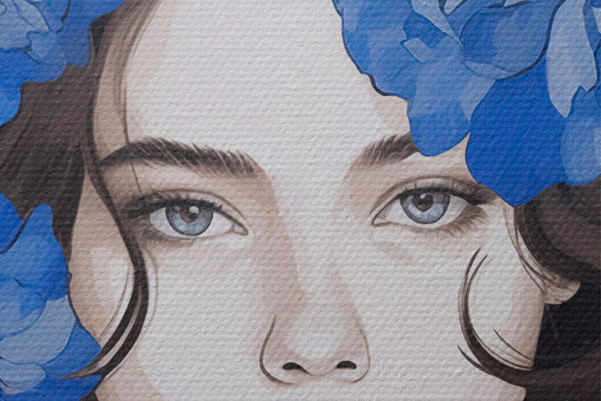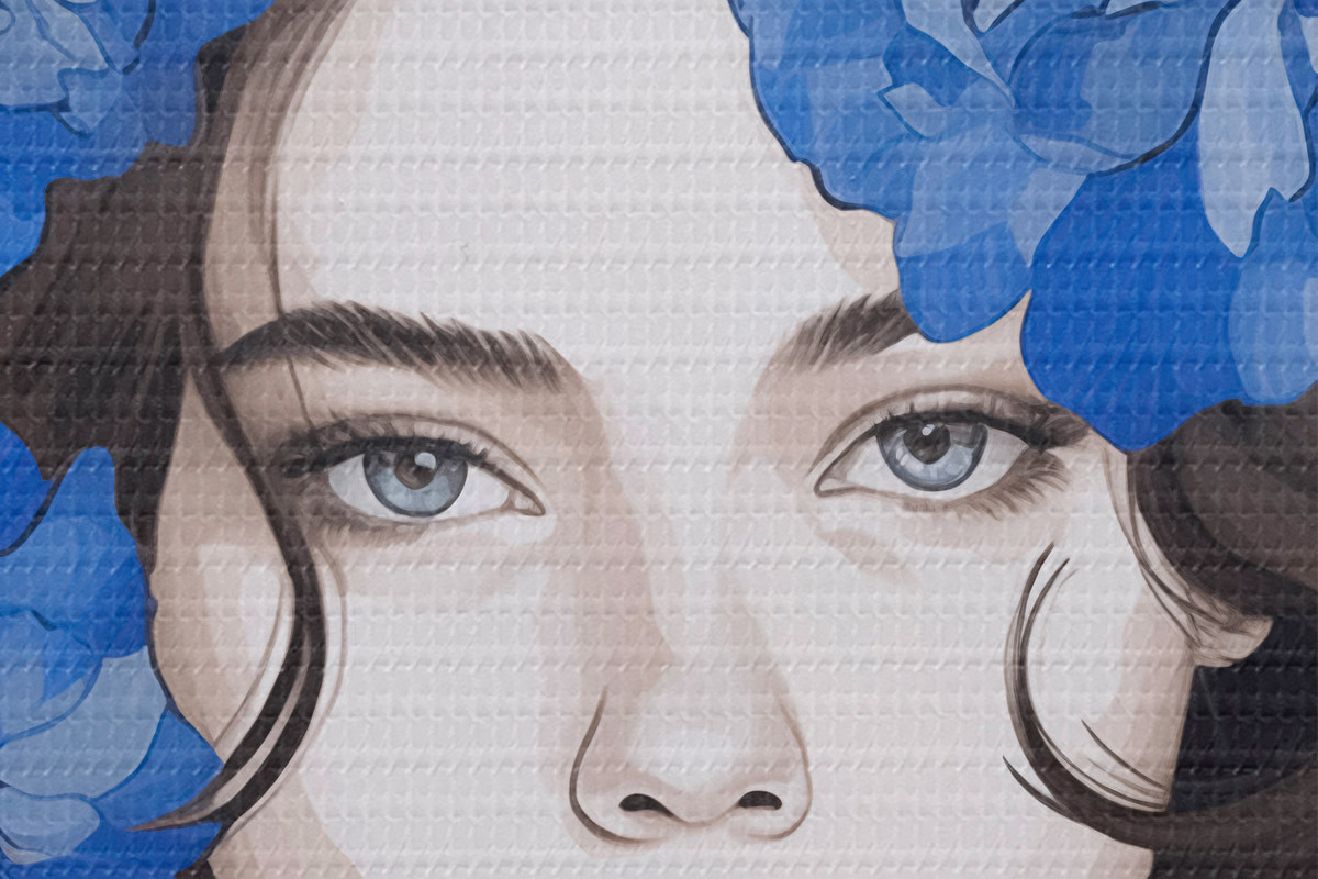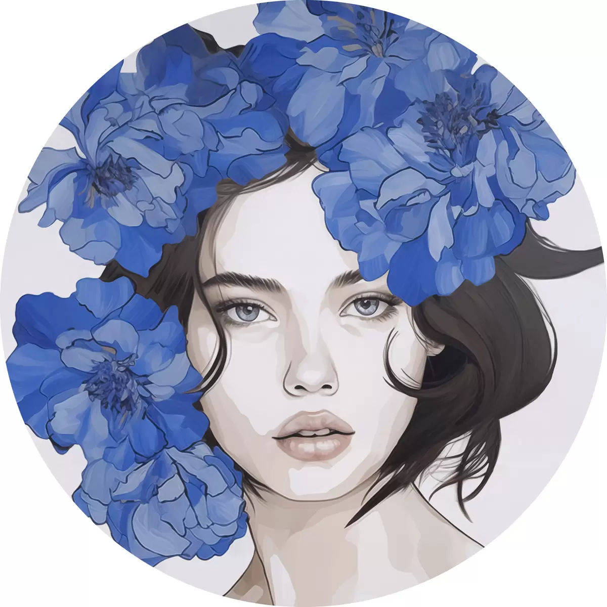 Nuotrauka Merginos su mėlynomis gėlėmis portretas Nr r45756