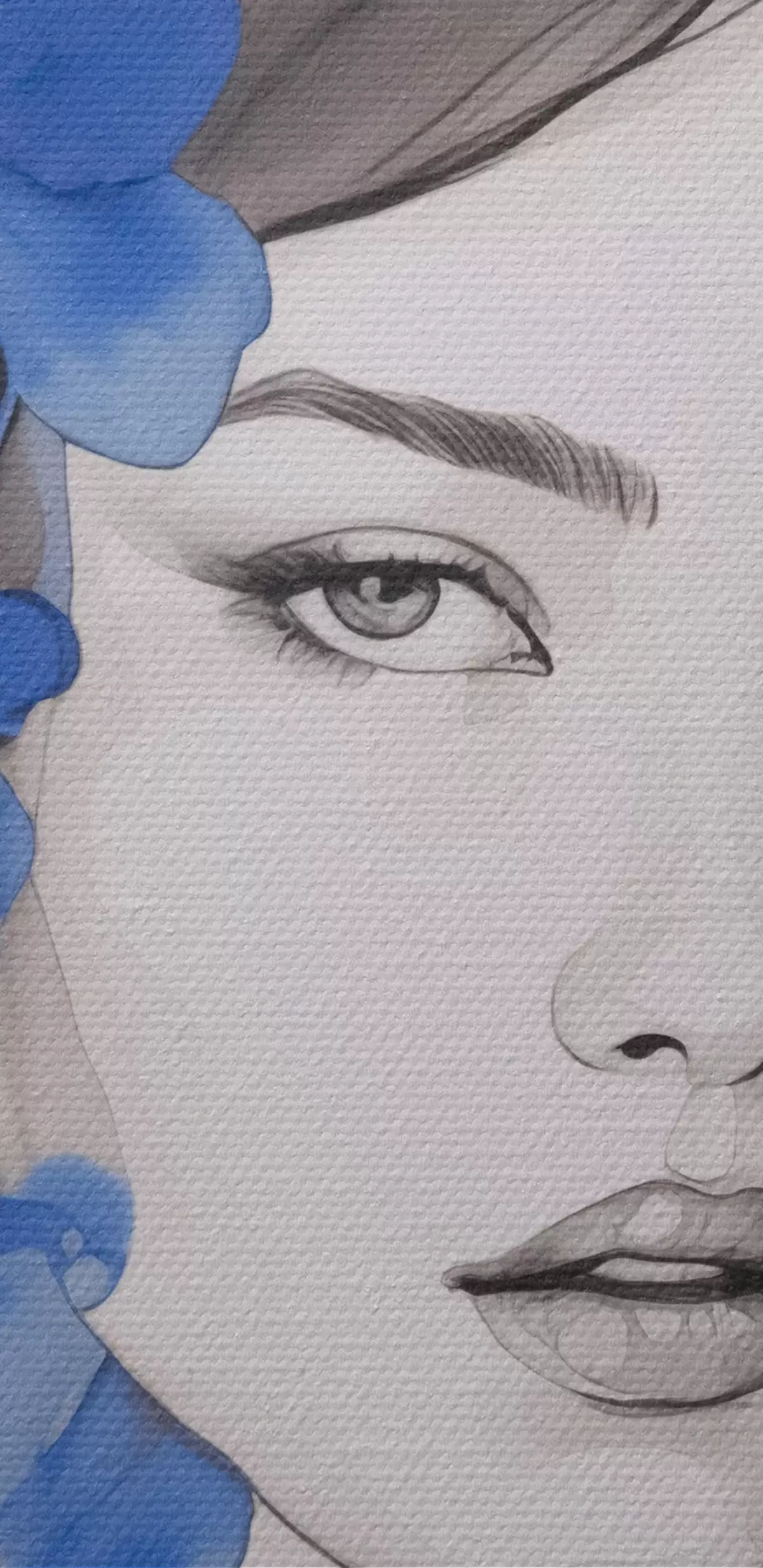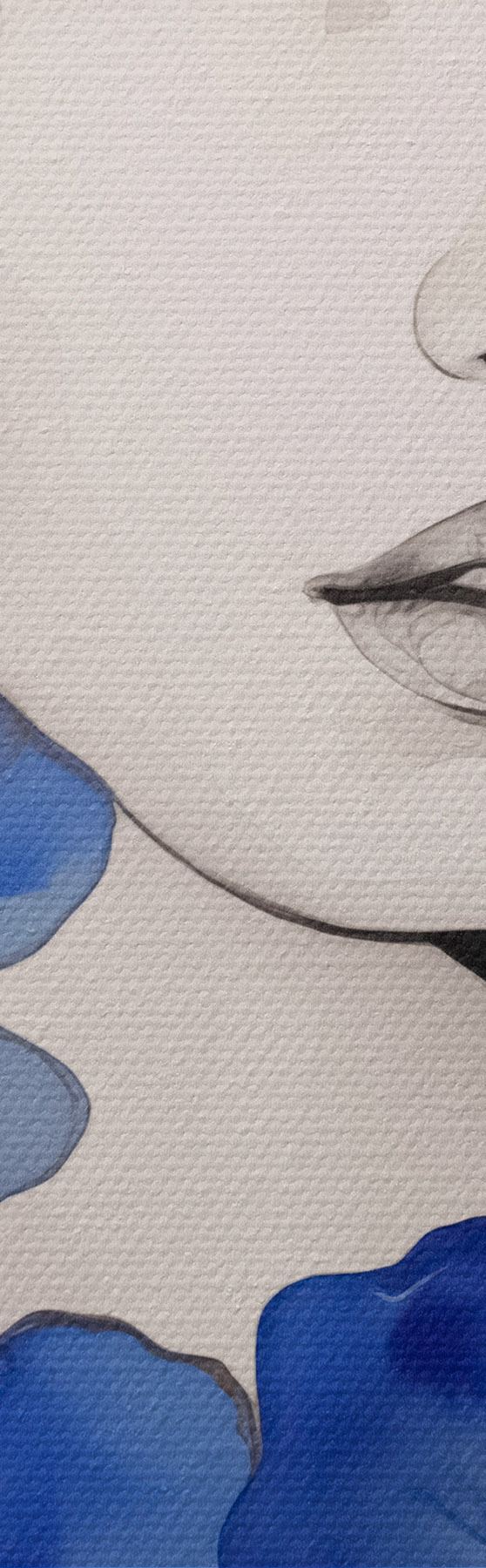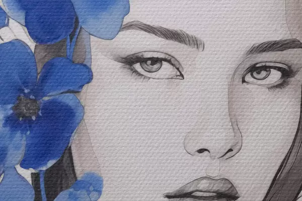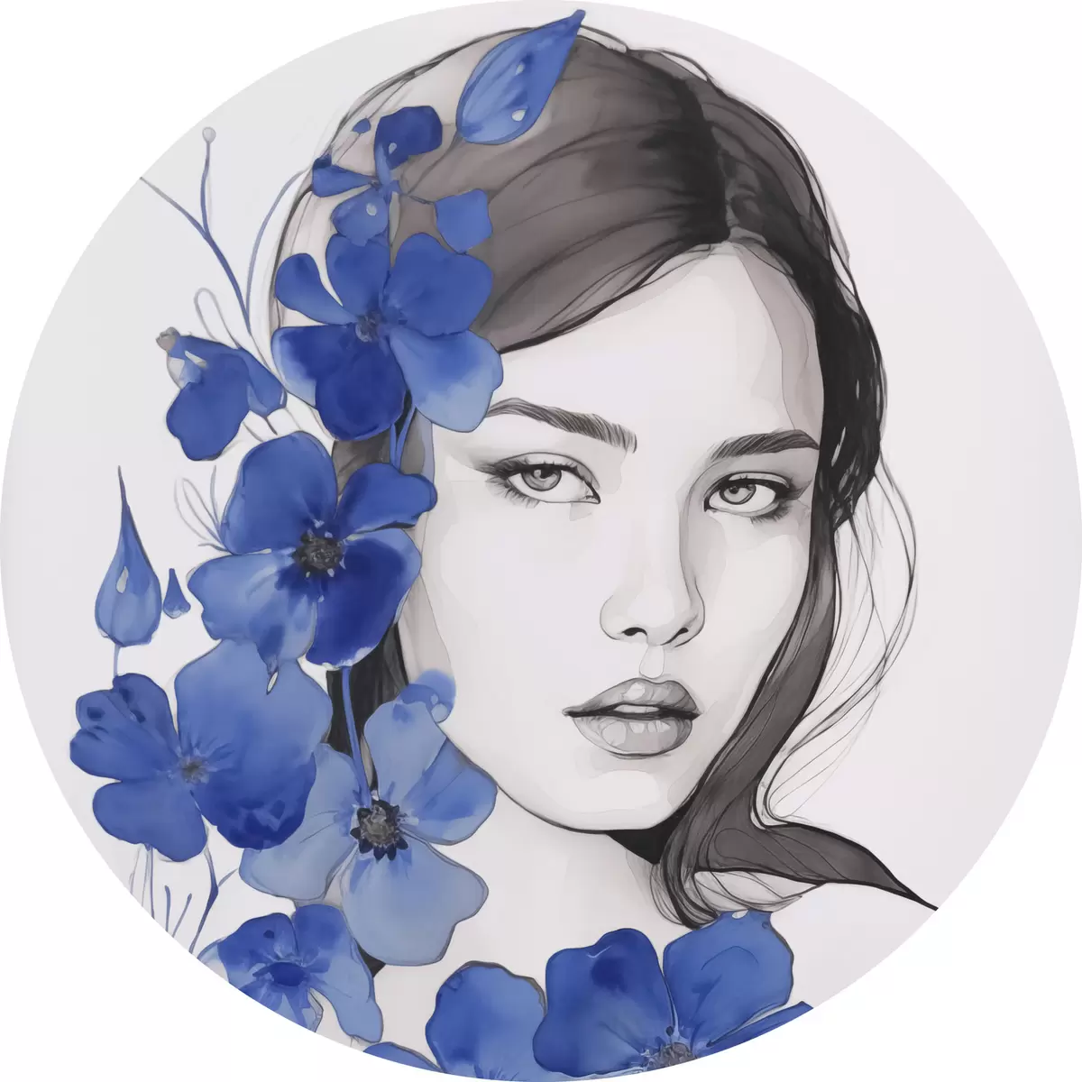 Nuotrauka Mergaitė ir mėlynos gėlės Nr r45757