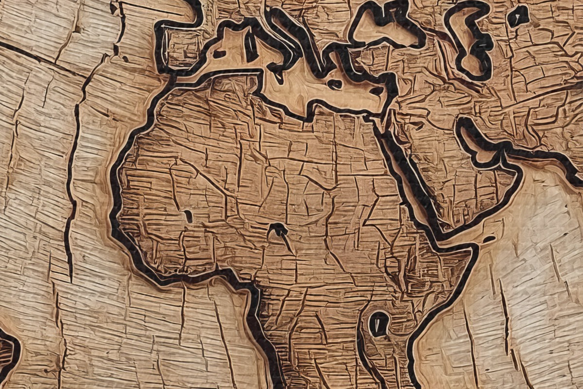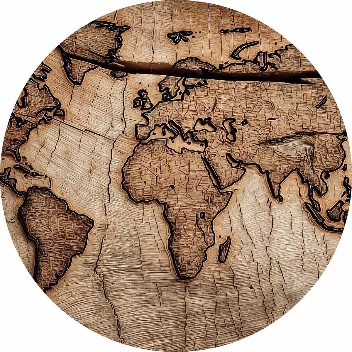 Nuotrauka Graviruotas medinis pasaulio žemėlapis Nr r45805