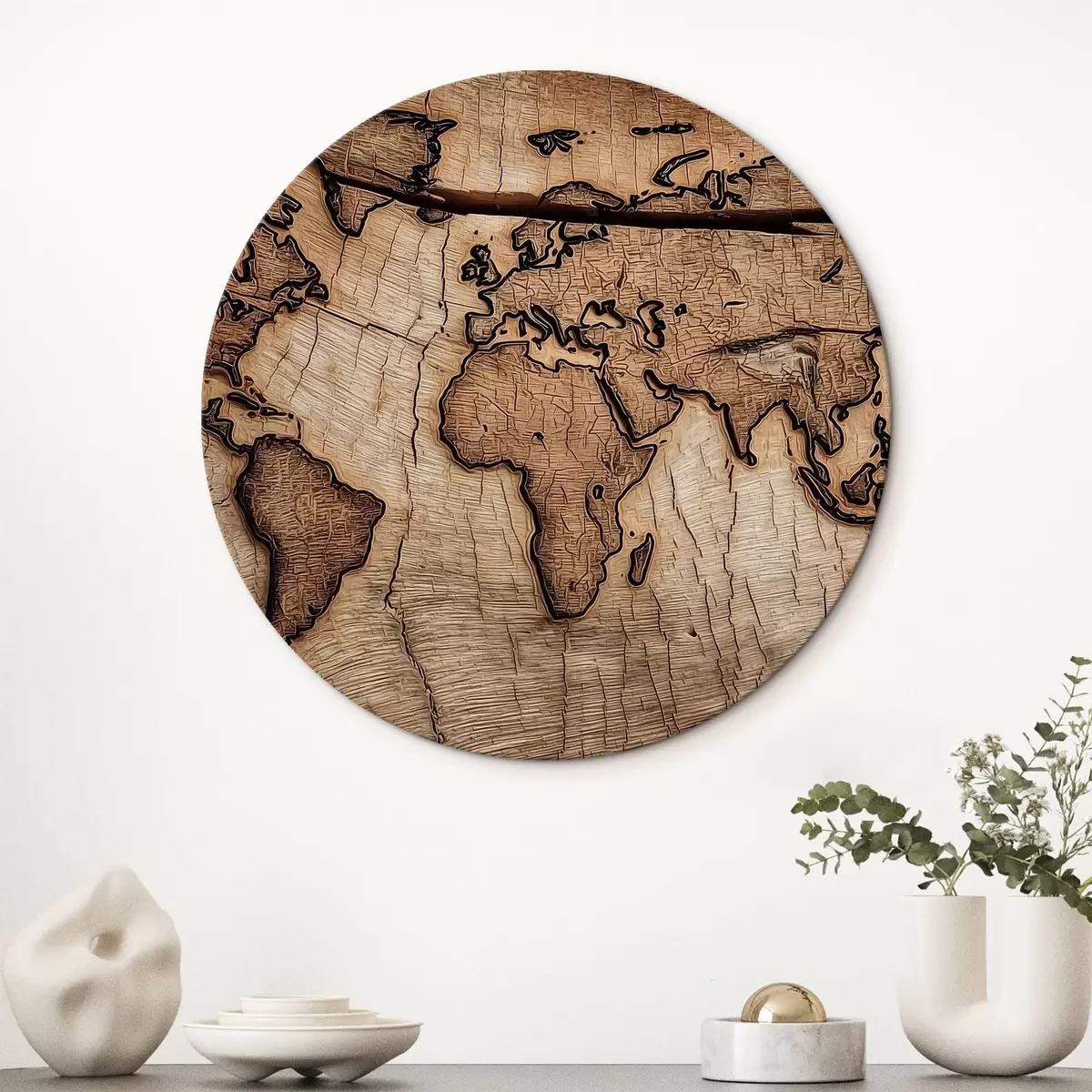 Apvalūs paveikslai Graviruotas medinis pasaulio žemėlapis r45805