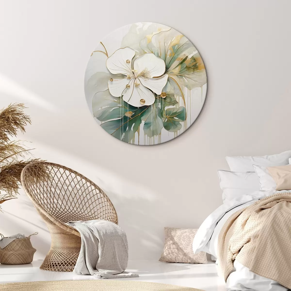 Nuotrauka Balta gėlė su geltonai oranžiniais akcentais ir žaliais lapais Nr r45815