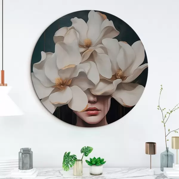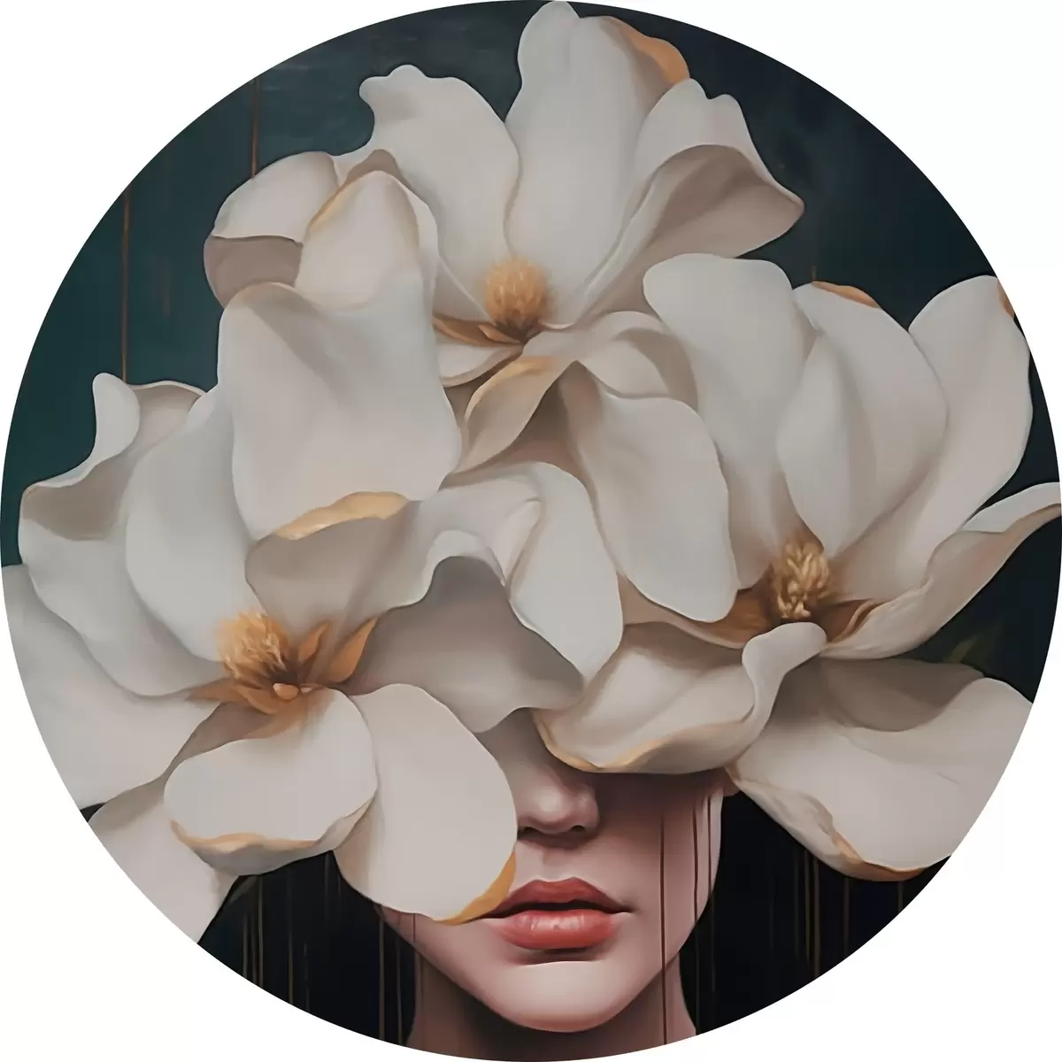 Nuotrauka Moteris su baltomis gėlėmis ant galvos Nr r45843