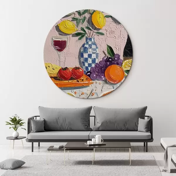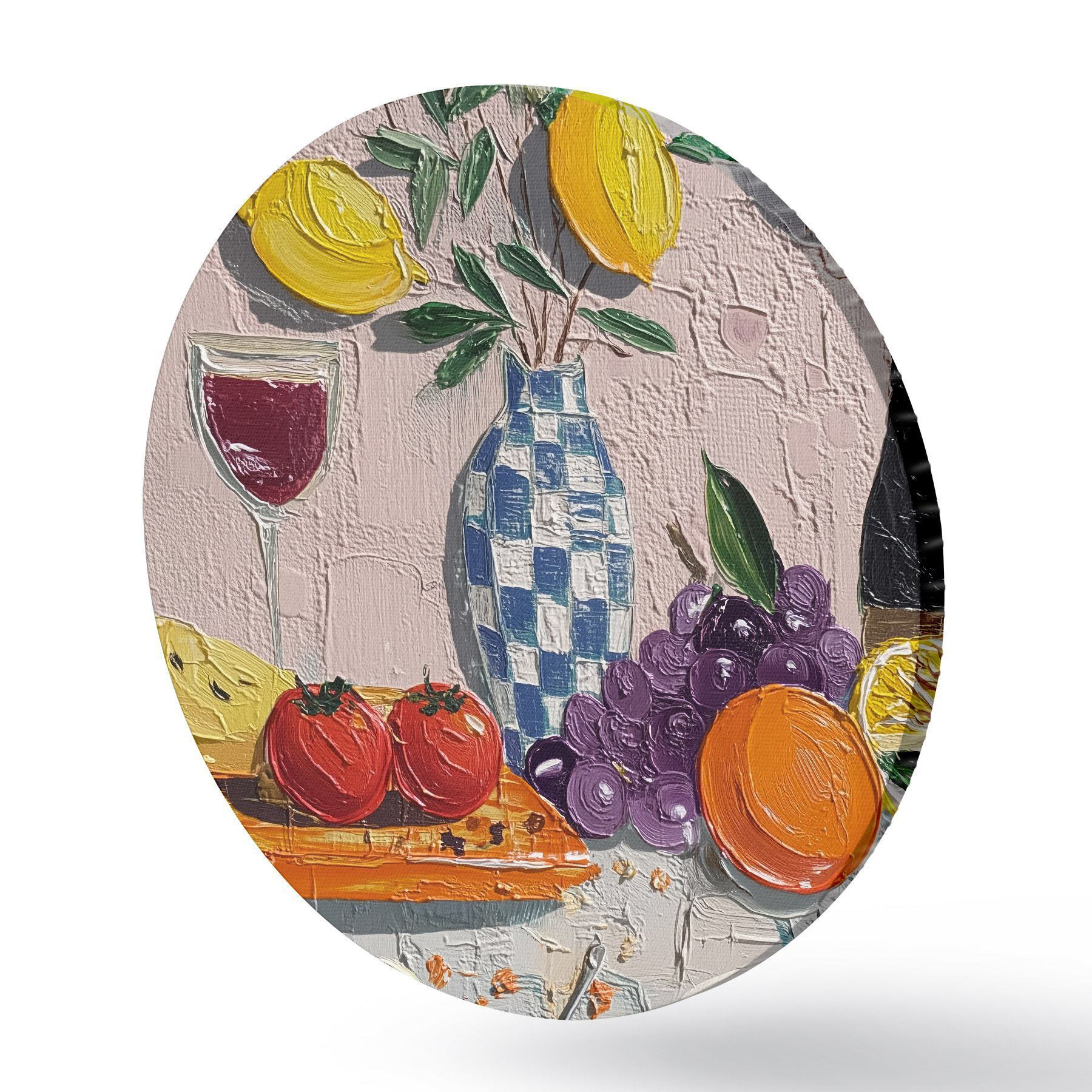 Nuotrauka Pastelinė natiurmortas: citrinos, vynuogės ir pomidorai, impasto Nr r45876