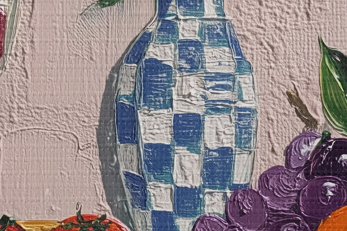 Nuotrauka Pastelinė natiurmortas: citrinos, vynuogės ir pomidorai, impasto Nr r45876