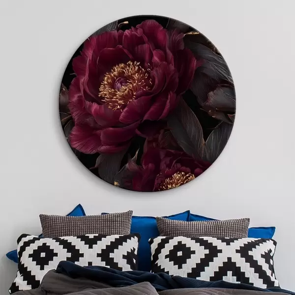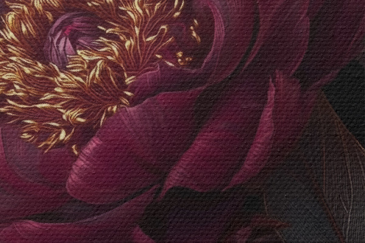 Nuotrauka Burgundiškos bijūnės ant juodo fono su geltonais akcentais Nr r45877