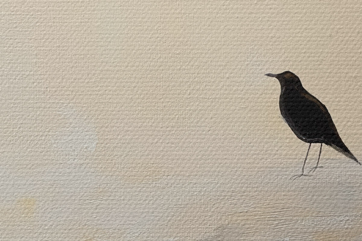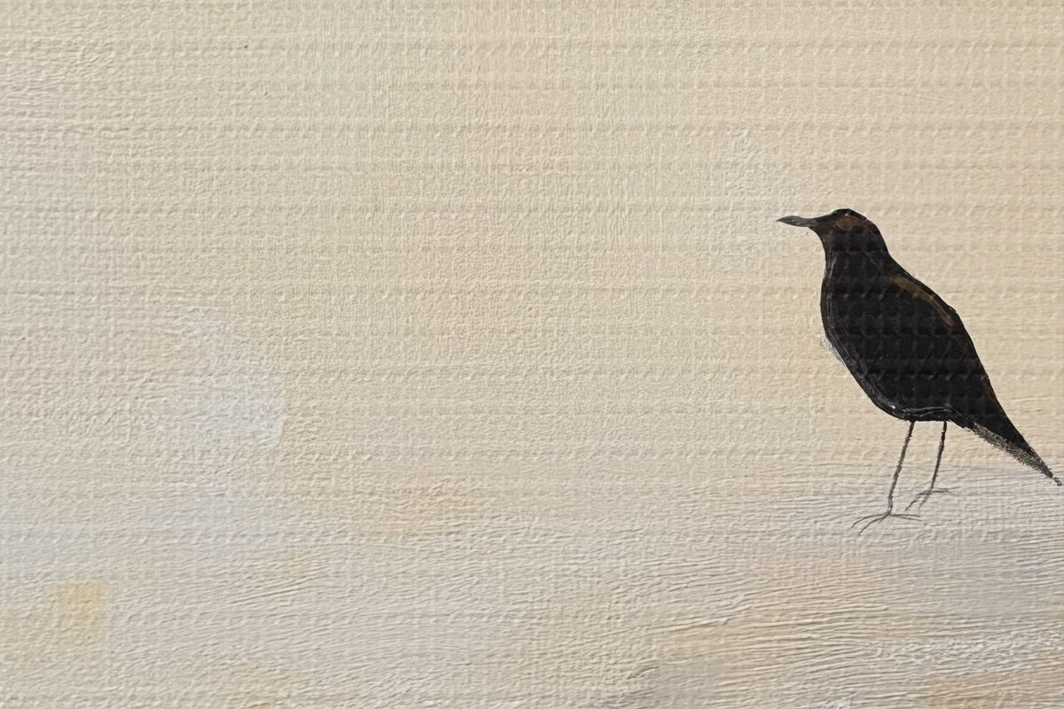 Nuotrauka Vienišas paukštis ant šilto smėlio spalvos fono Nr r45882