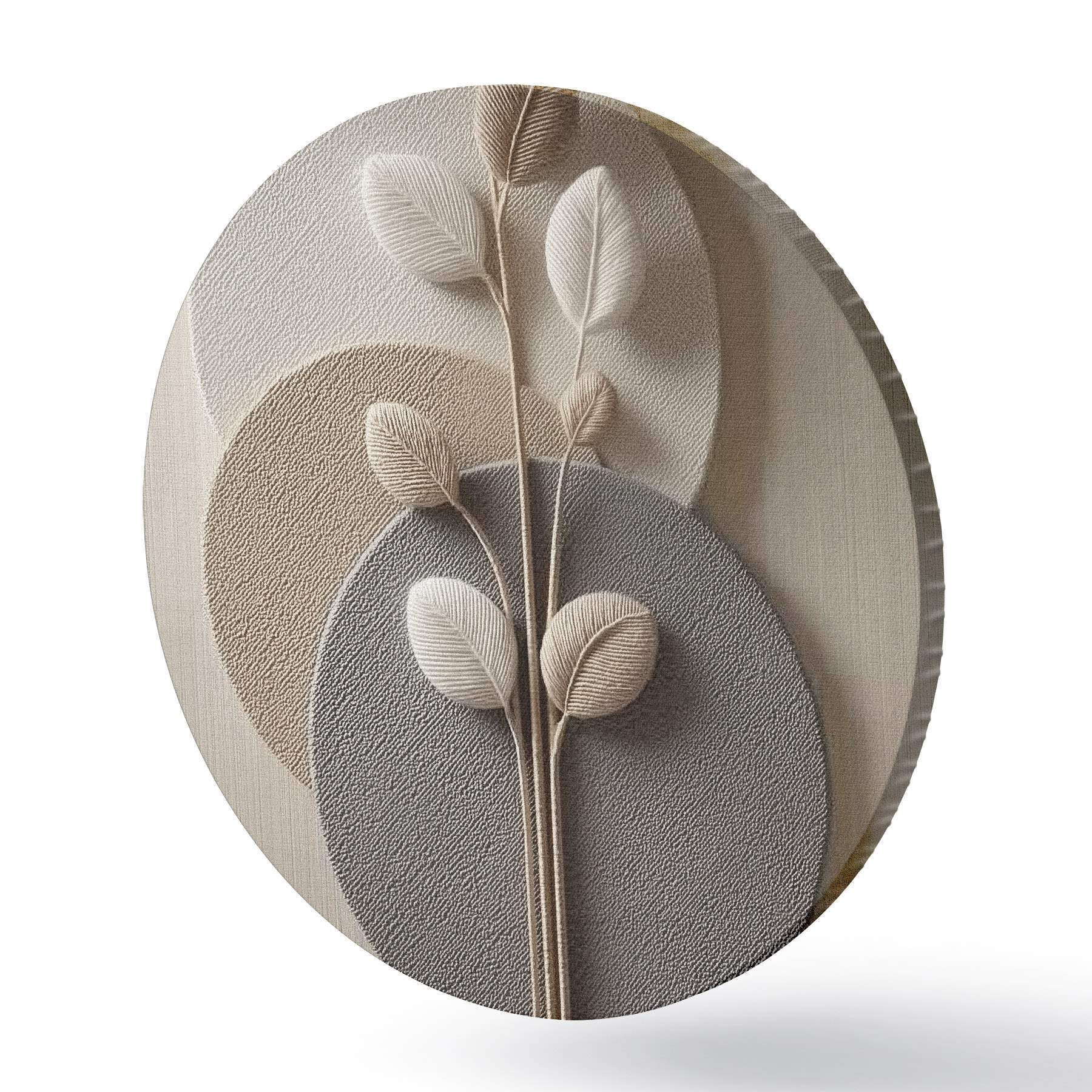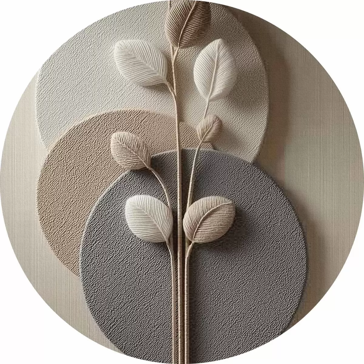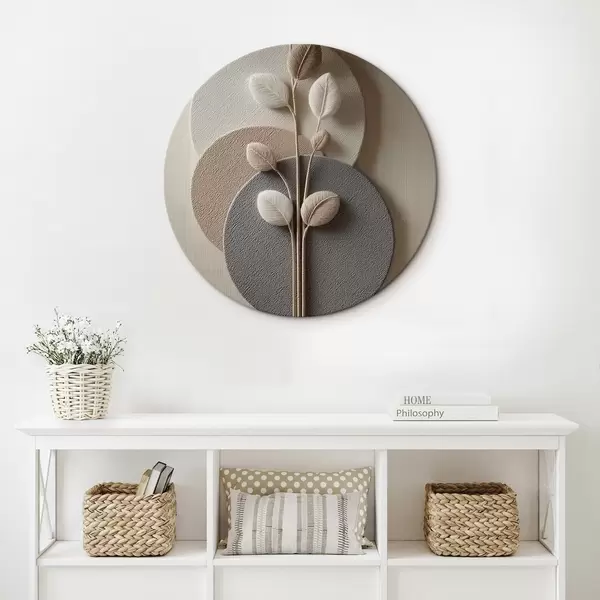 Apvalūs paveikslai Reljefiniai apskritimai ir šaka šiltų neutralių atspalvių r45883