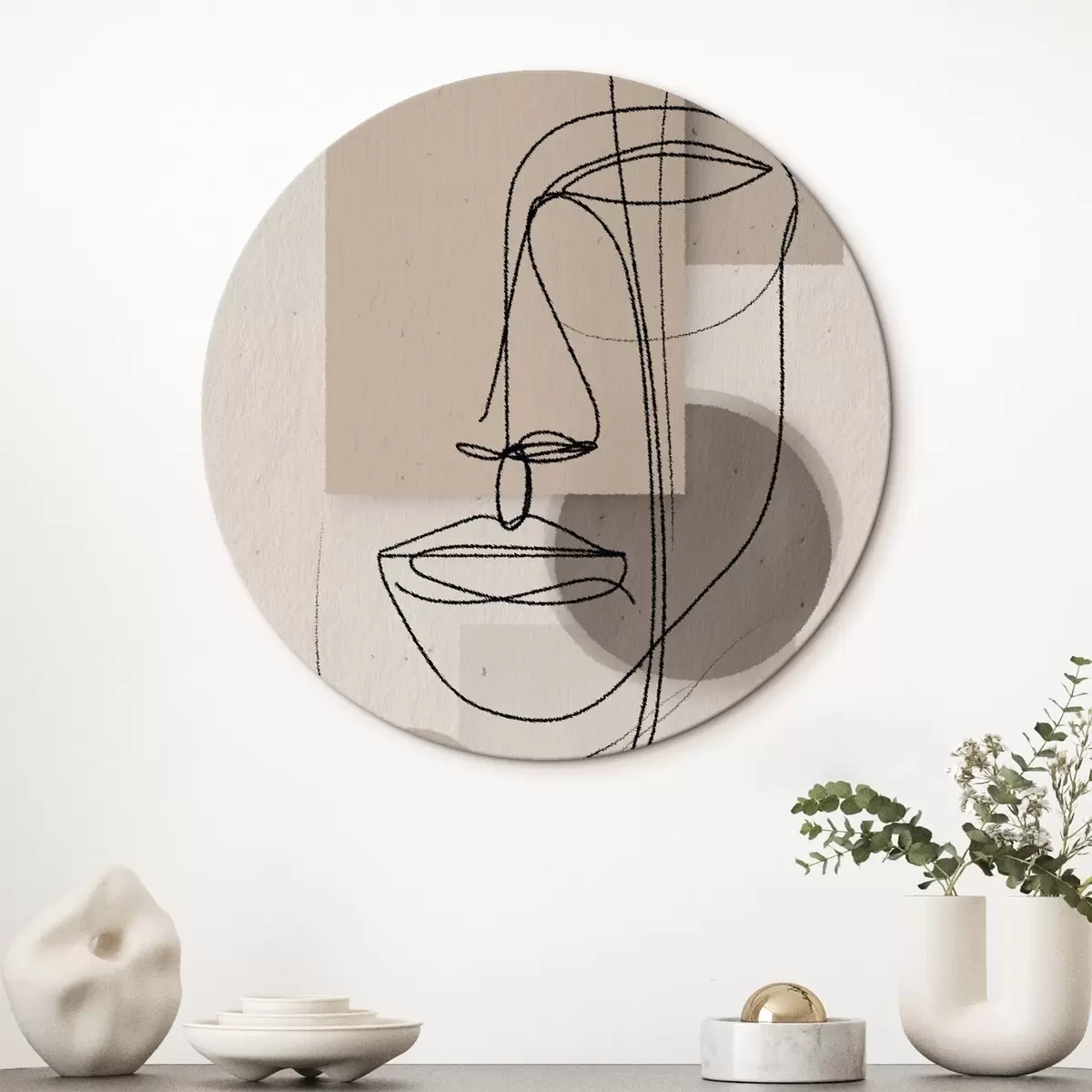 Nuotrauka Linijinis portretas ant smėlio spalvos geometrinių figūrų Nr r45886