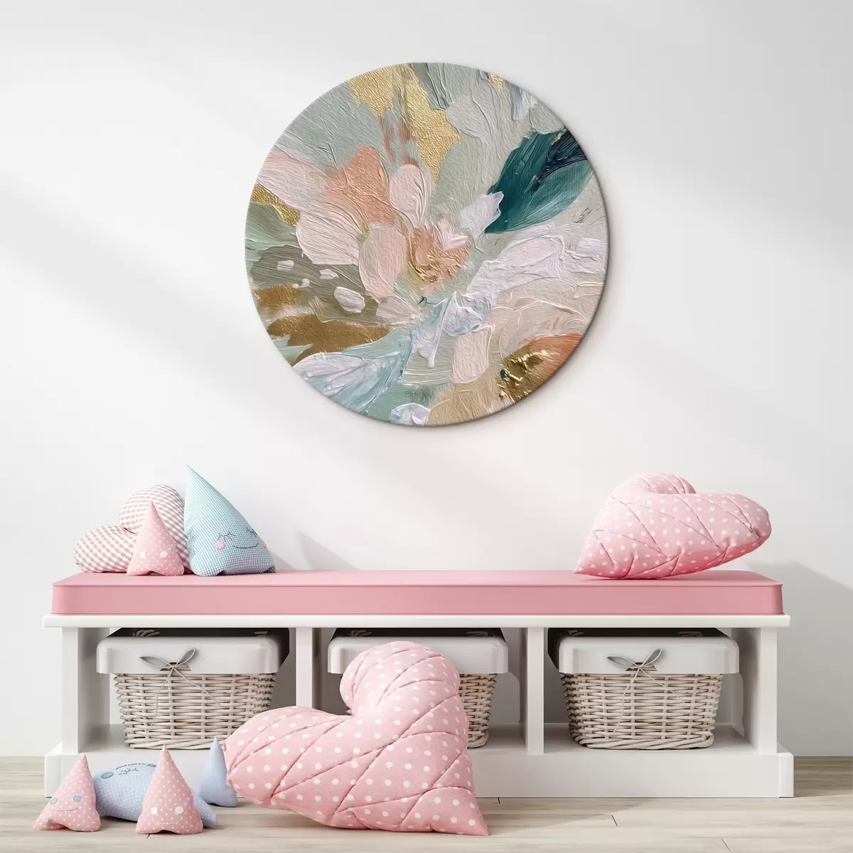 Apvalūs paveikslai Pasteliniai gėlių potėpiai su geltonomis dėmėmis r45899