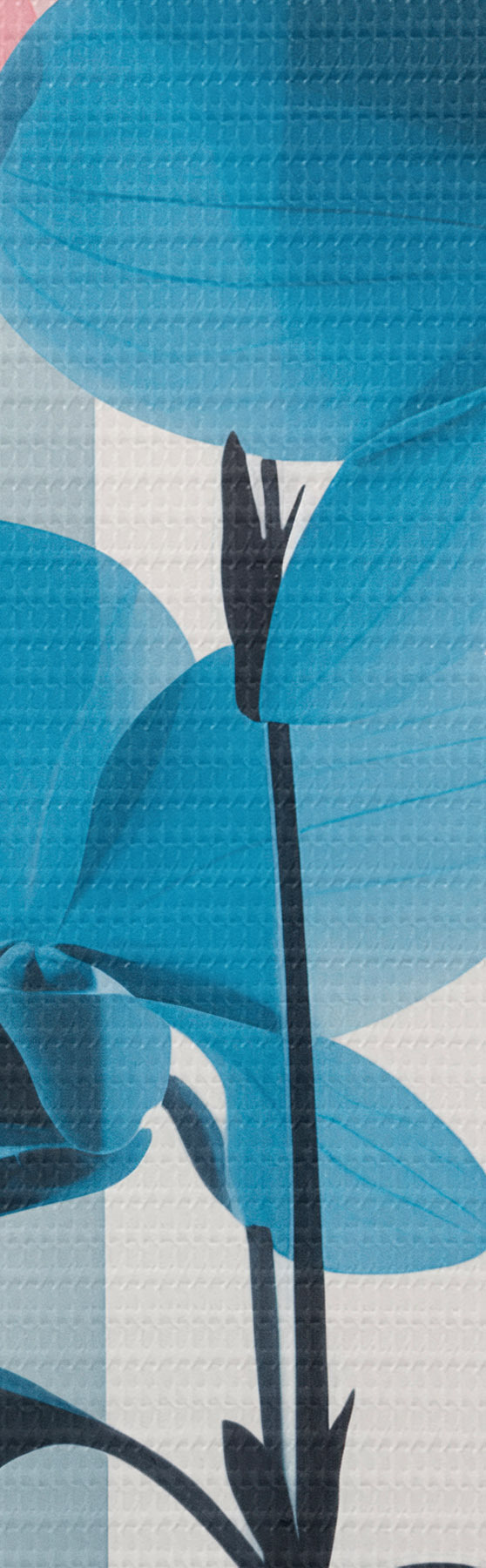 Nuotrauka Orchidėjos su lapais ant balto fono su vertikaliomis juostelėmis Nr r45925