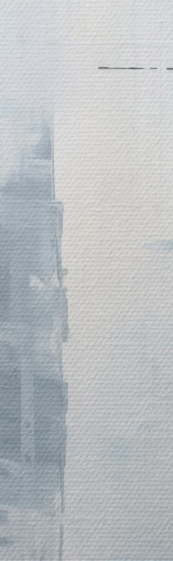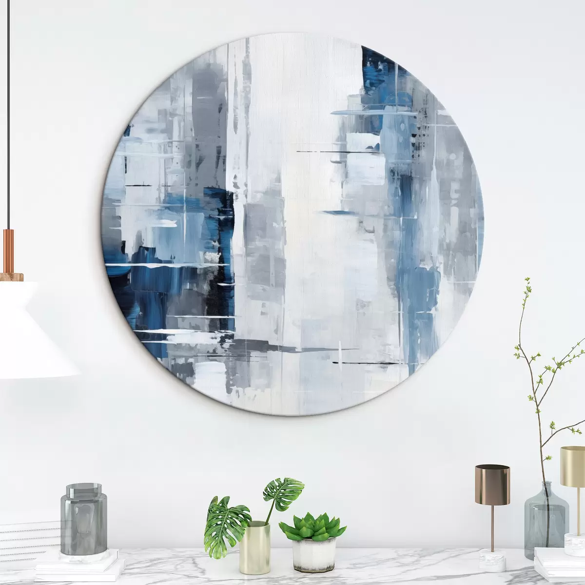 Nuotrauka Abstraktaus tapybos imitacija mėlyna, pilka ir balta spalvomis, vertikaliomis linijomis ir geometrinėmis formomis Nr r45926