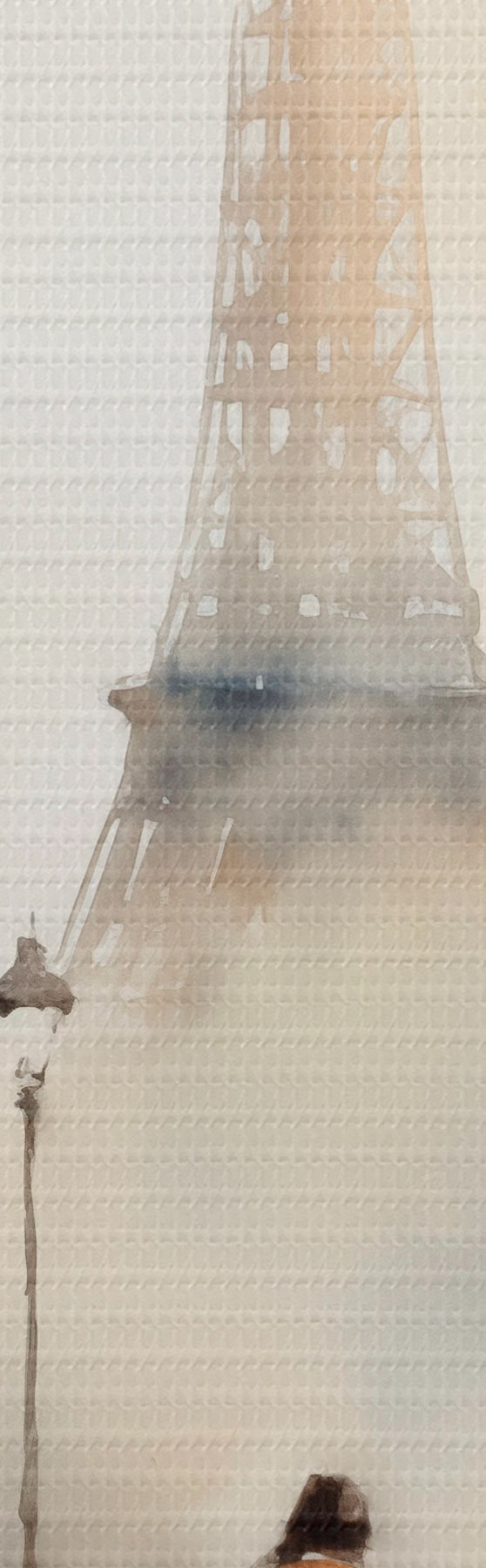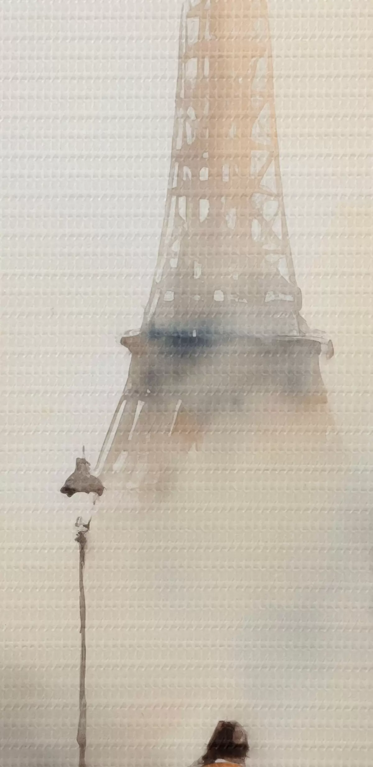Nuotrauka Lietinga rudens diena Paryžiuje su Eifelio bokštu fone ir senoviniais gatvių žibintais Nr r45931