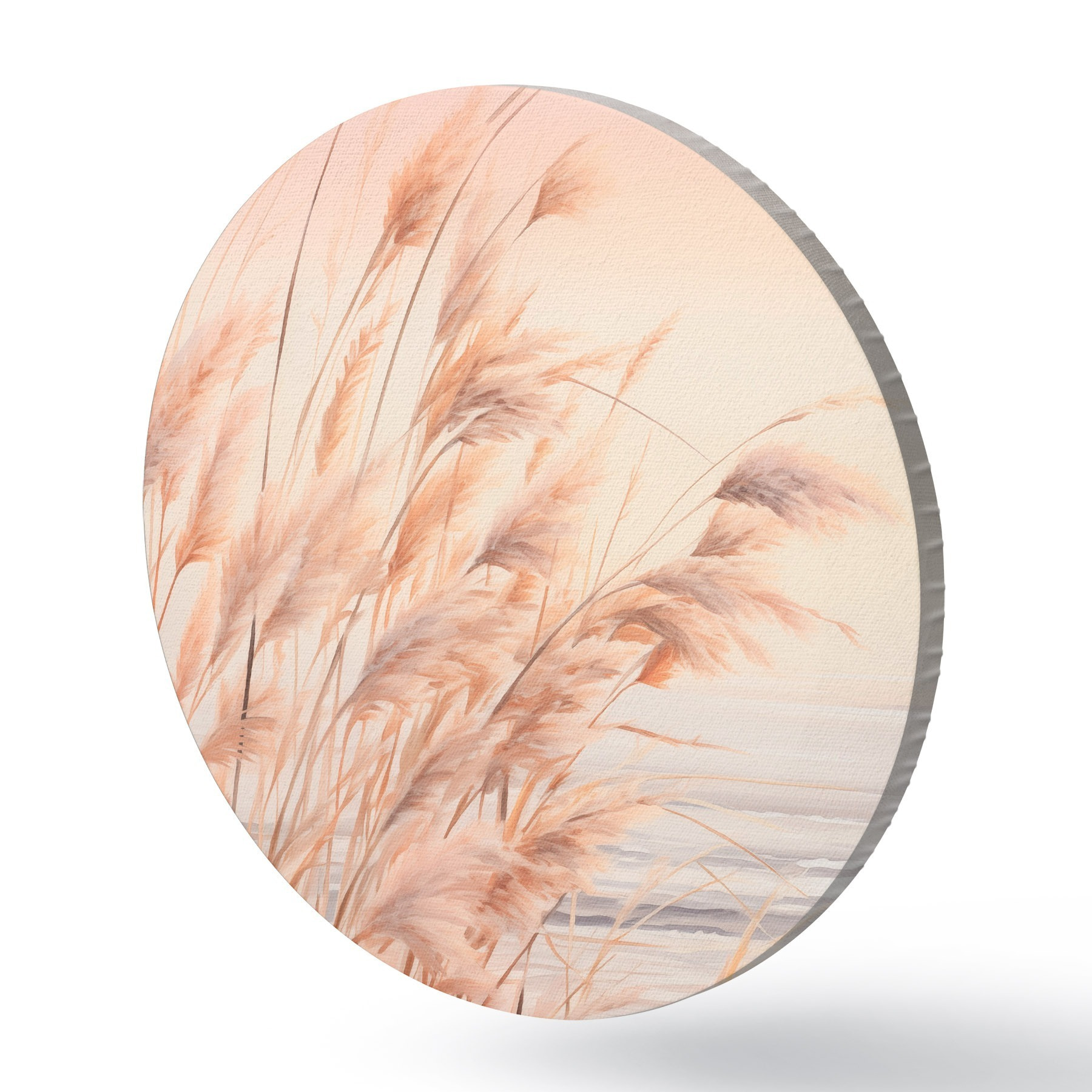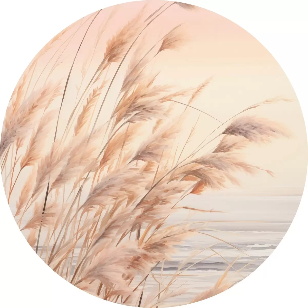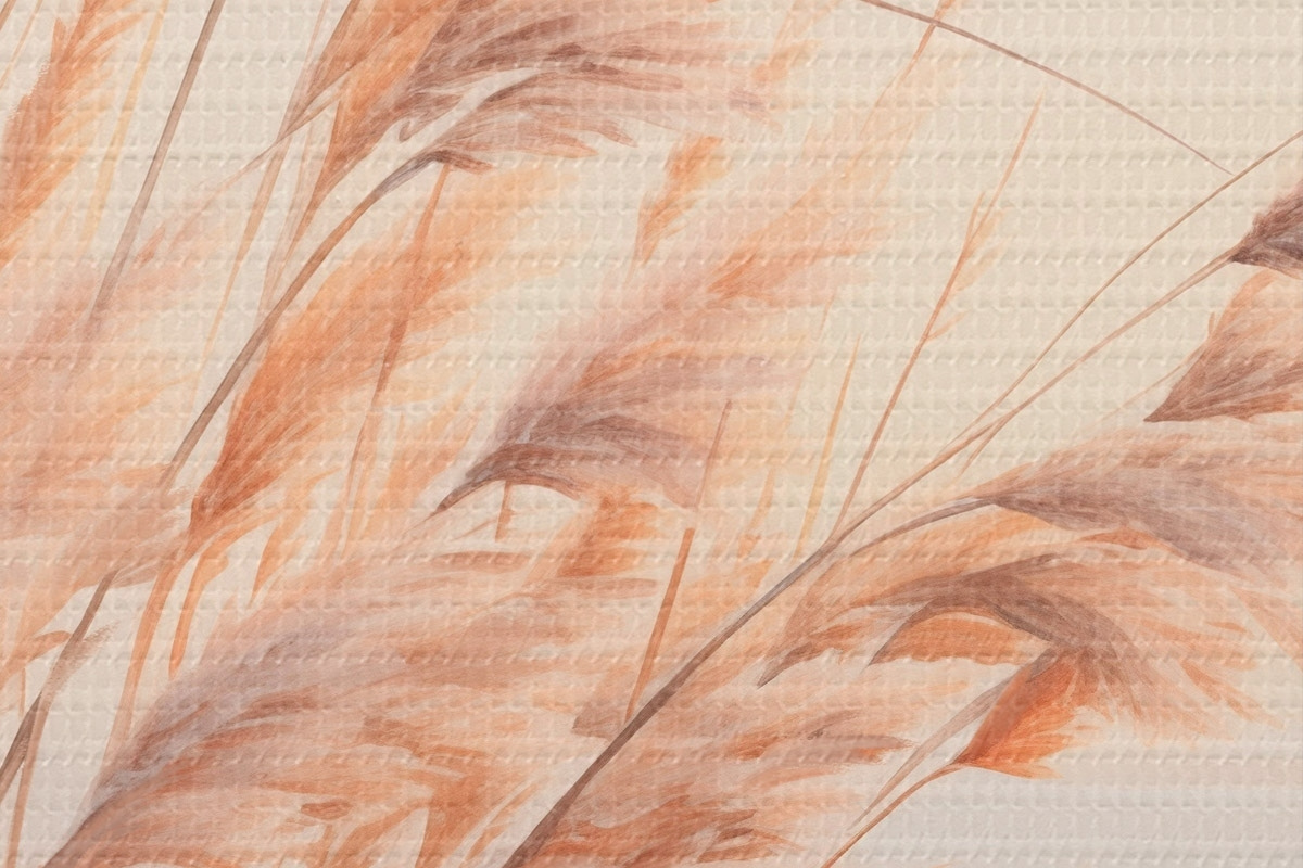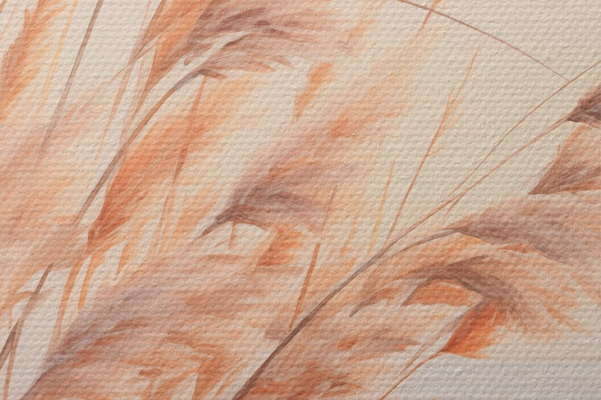 Nuotrauka Pampų žolė su pastelinės oranžinės spalvos palete, šviesiai rožinis dangus, ramus kraštovaizdis Nr r45934