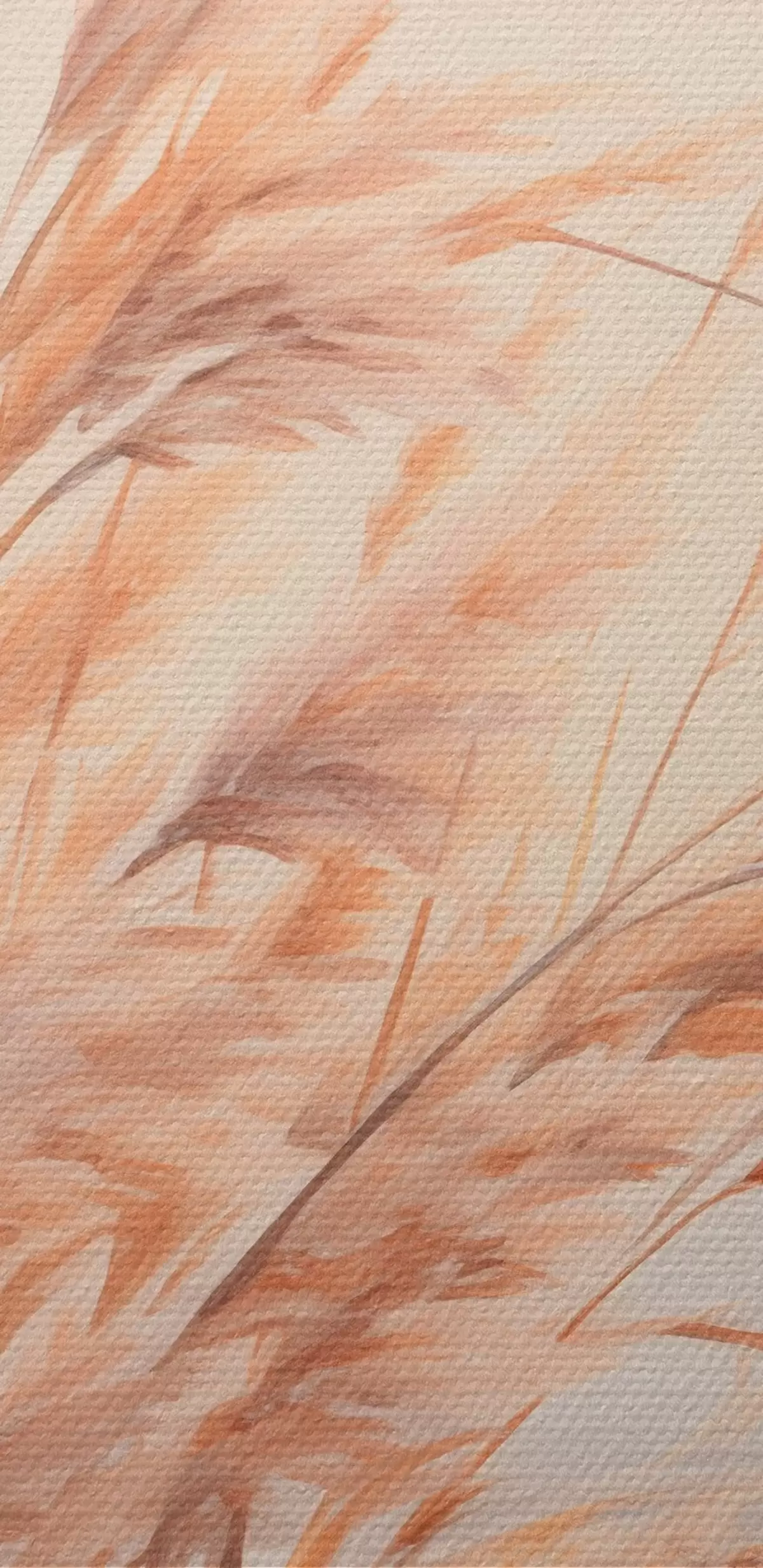 Nuotrauka Pampų žolė su pastelinės oranžinės spalvos palete, šviesiai rožinis dangus, ramus kraštovaizdis Nr r45934
