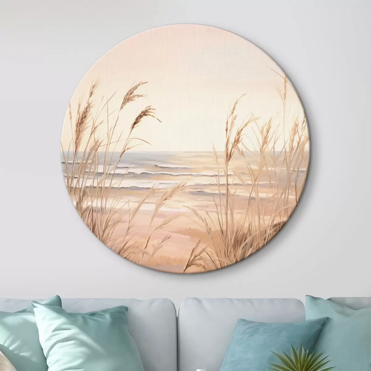 Nuotrauka Pampų žolė su pastelinės oranžinės spalvos palete, šviesiai rožinis dangus, ramus kraštovaizdis Nr r45935