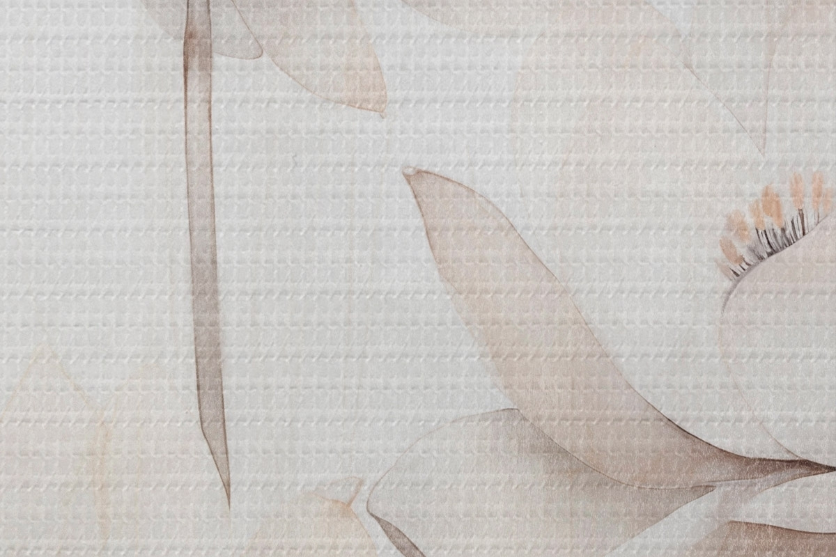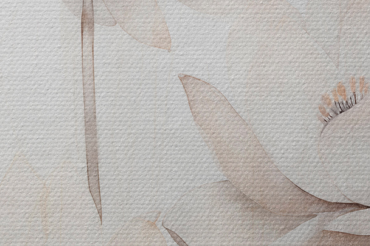 Nuotrauka Balta tekstūruota lotoso gėlė su tamsiais lapais, šviesus fonas, minimalistinis dizainas Nr r45936