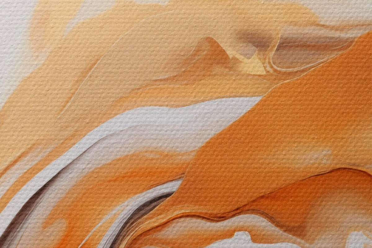 Nuotrauka Abstraktaus tapybos imitacija su sklandžiomis formomis balto, oranžinio ir rudo atspalvių, minimalistinė Nr r45938