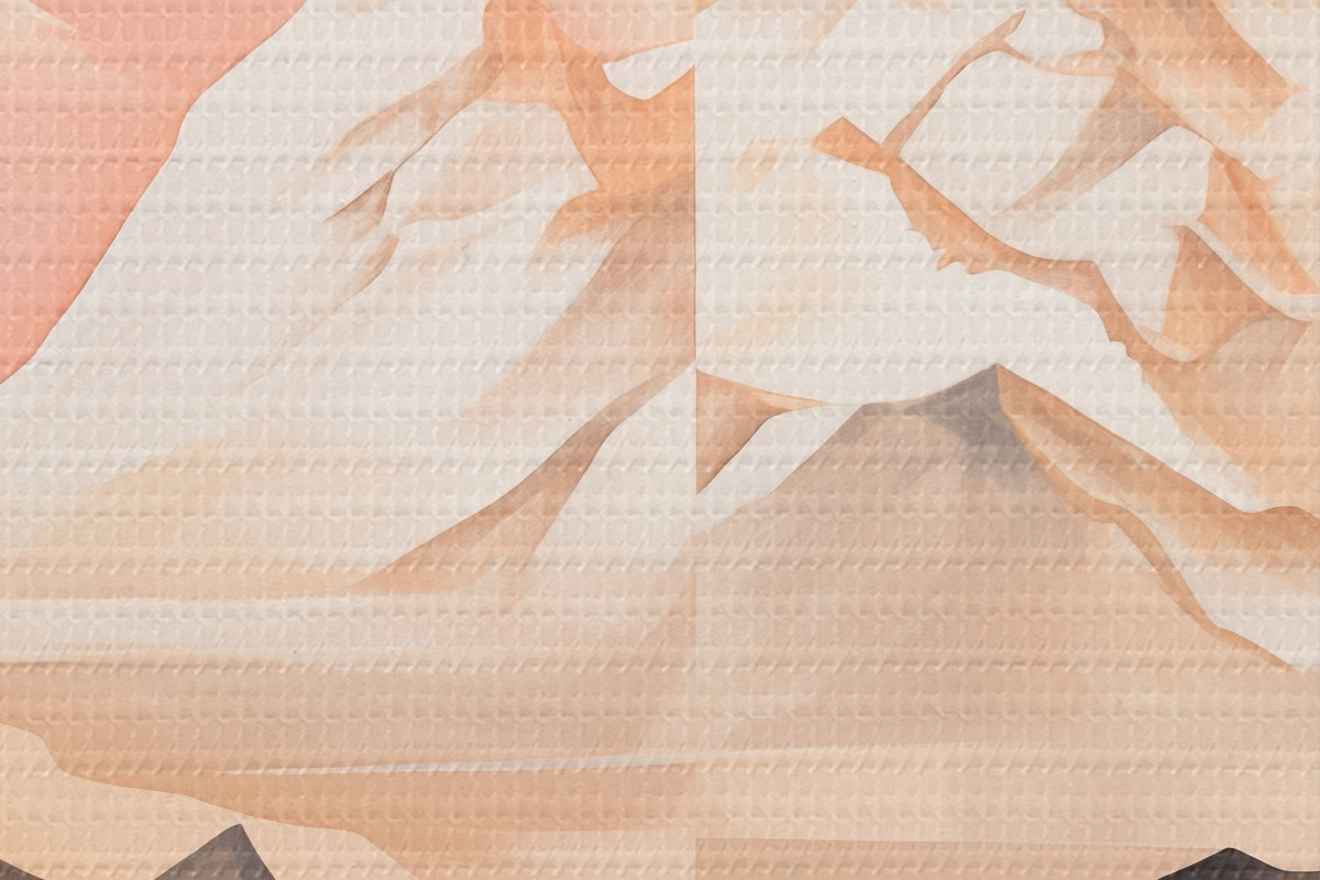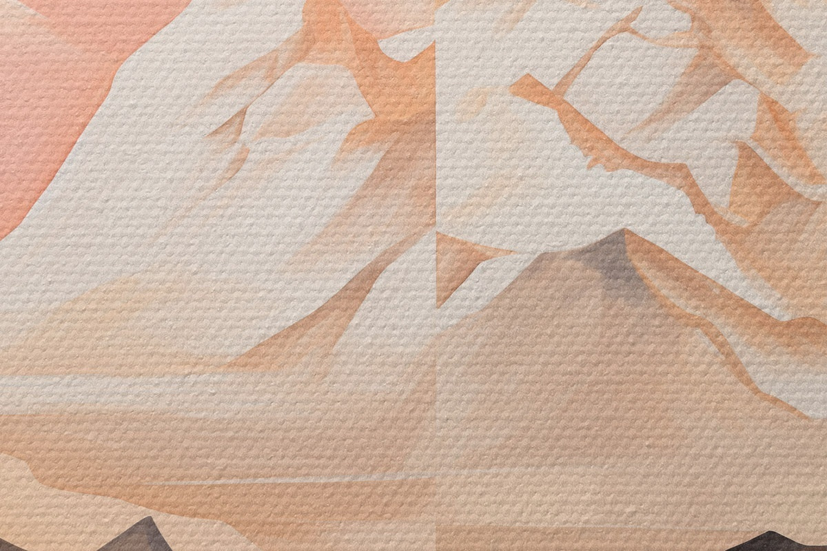 Nuotrauka Abstraktus peizažas su kalnais ir ežeru, pastelinės spalvos, minimalistinis stilius Nr r45948