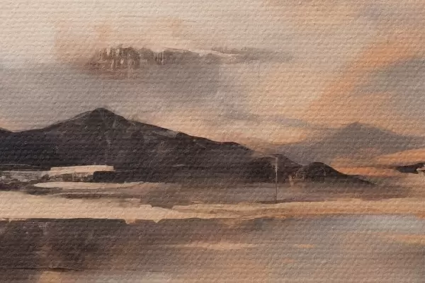 Nuotrauka Peizažo tekstūruotas paveikslas, imituojantis kalnus ir ežerą Nr r45950
