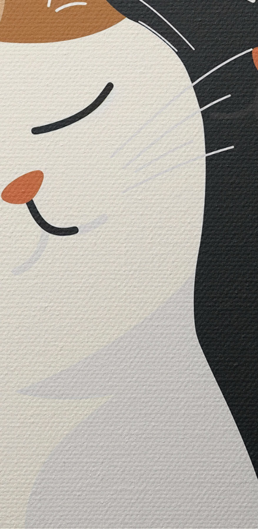 Galima užsakyti trijų rūšių medžiagą: "Economic Canvas" - tanki ir patvari medžiaga skaitmeninei spaudai, identiška dailininko drobės medžiagai, vandeniui atsparus paviršius, tikroviškas detalių atkūrimas, vidutinio grūdėtumo medžiaga. Premium Canvas - tekstūra primena dailininko drobę (susipynę smulkūs siūlai). Minkštas, detalus vaizdo atkūrimas ant matinio paviršiaus. Eco-Premium - aukštos kokybės 100 % medvilninis audinys. Dėl natūralių medvilnės pluoštų medžiaga yra patvari ir atspari nusidėvėjimui. Puikus spalvų atkūrimas ir detalumas.