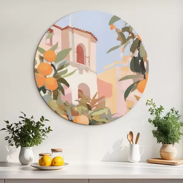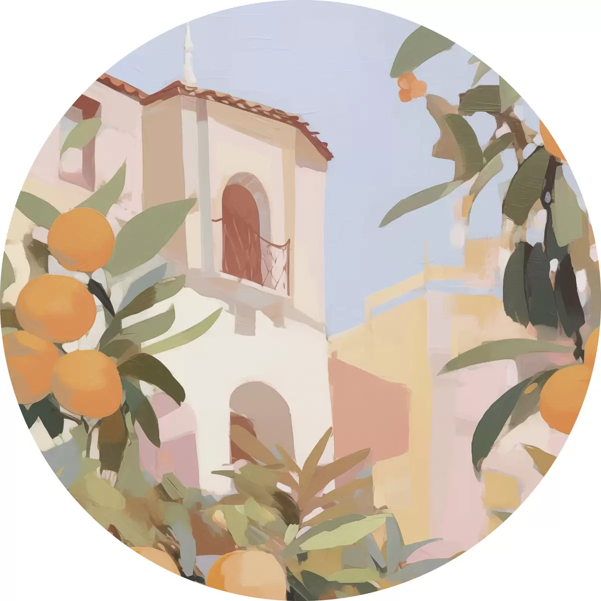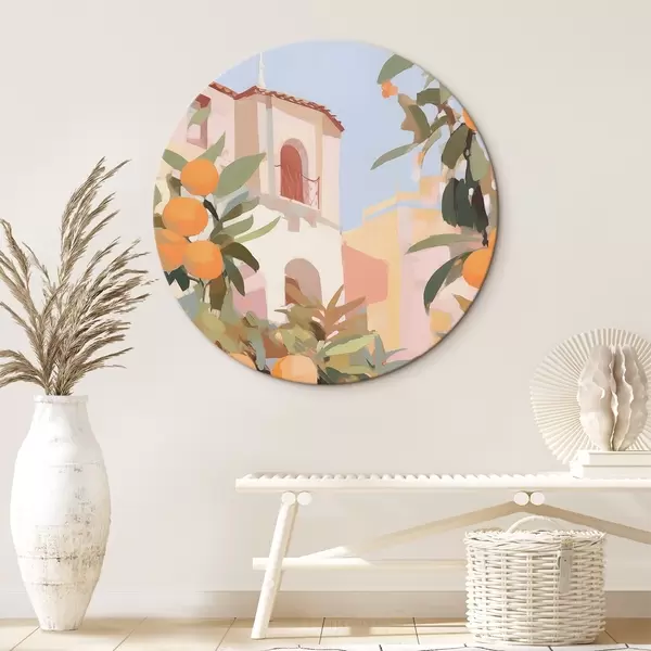 Apvalūs paveikslai Apelsinai ant šakos priešais namą r46060