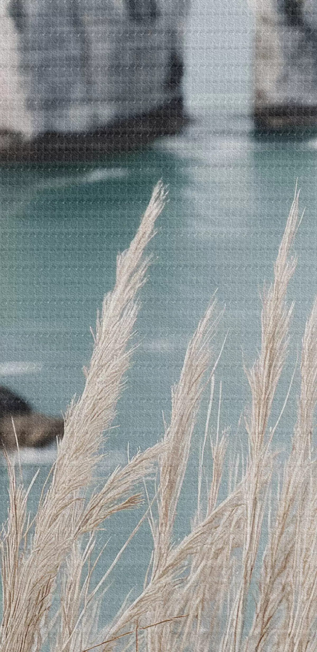 Nuotrauka Jūra ir uolų arka, vaizdas per sausą žolę Nr r46142