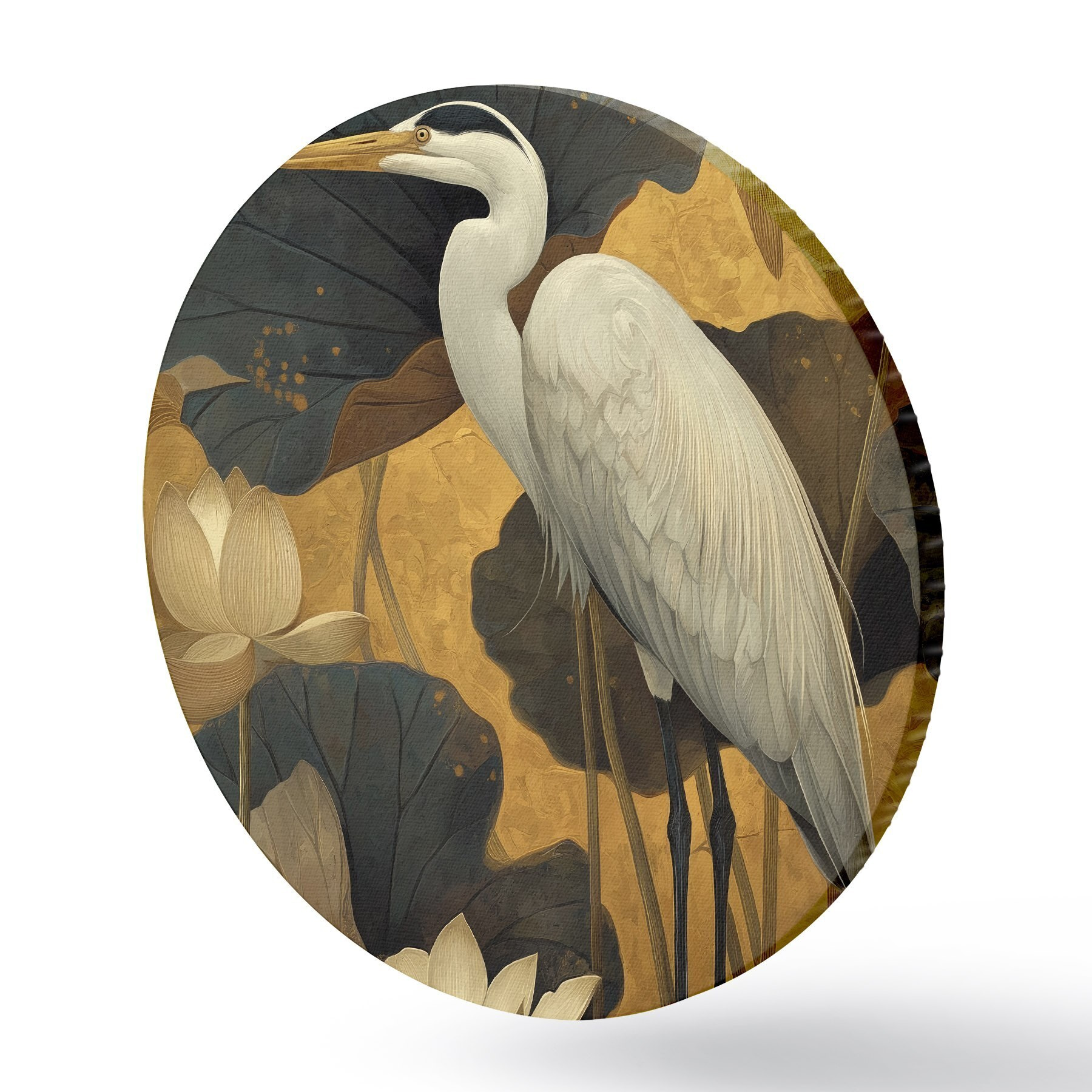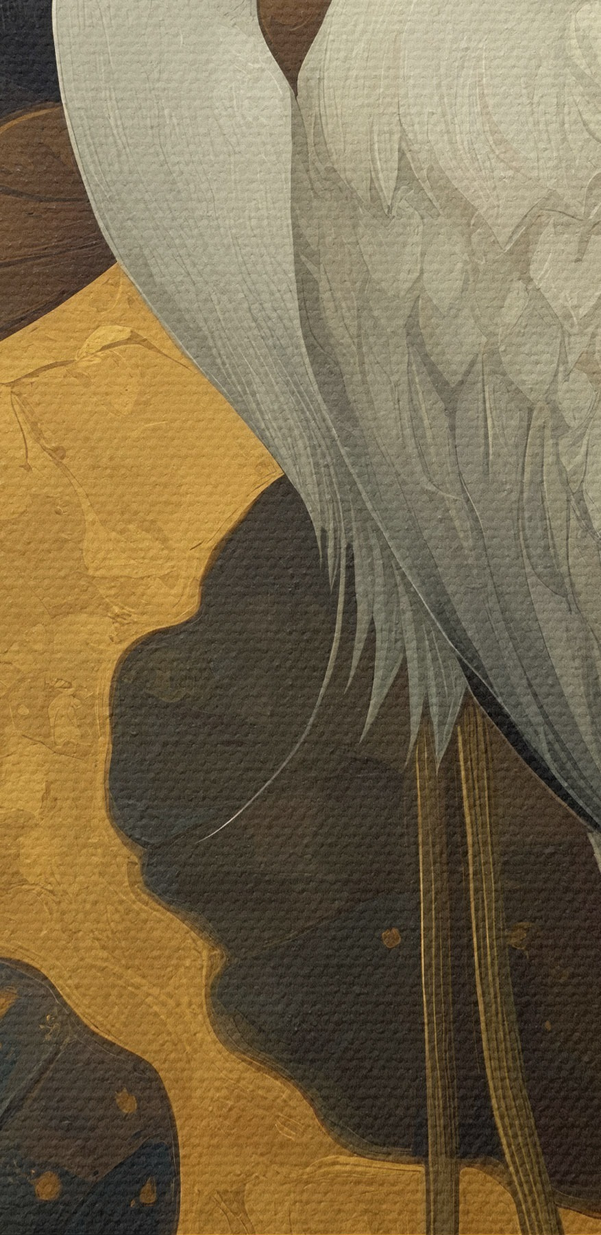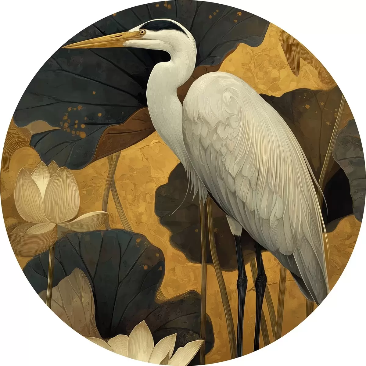 Nuotrauka Gervė tarp lotoso žiedų šiltame fone Nr r46148