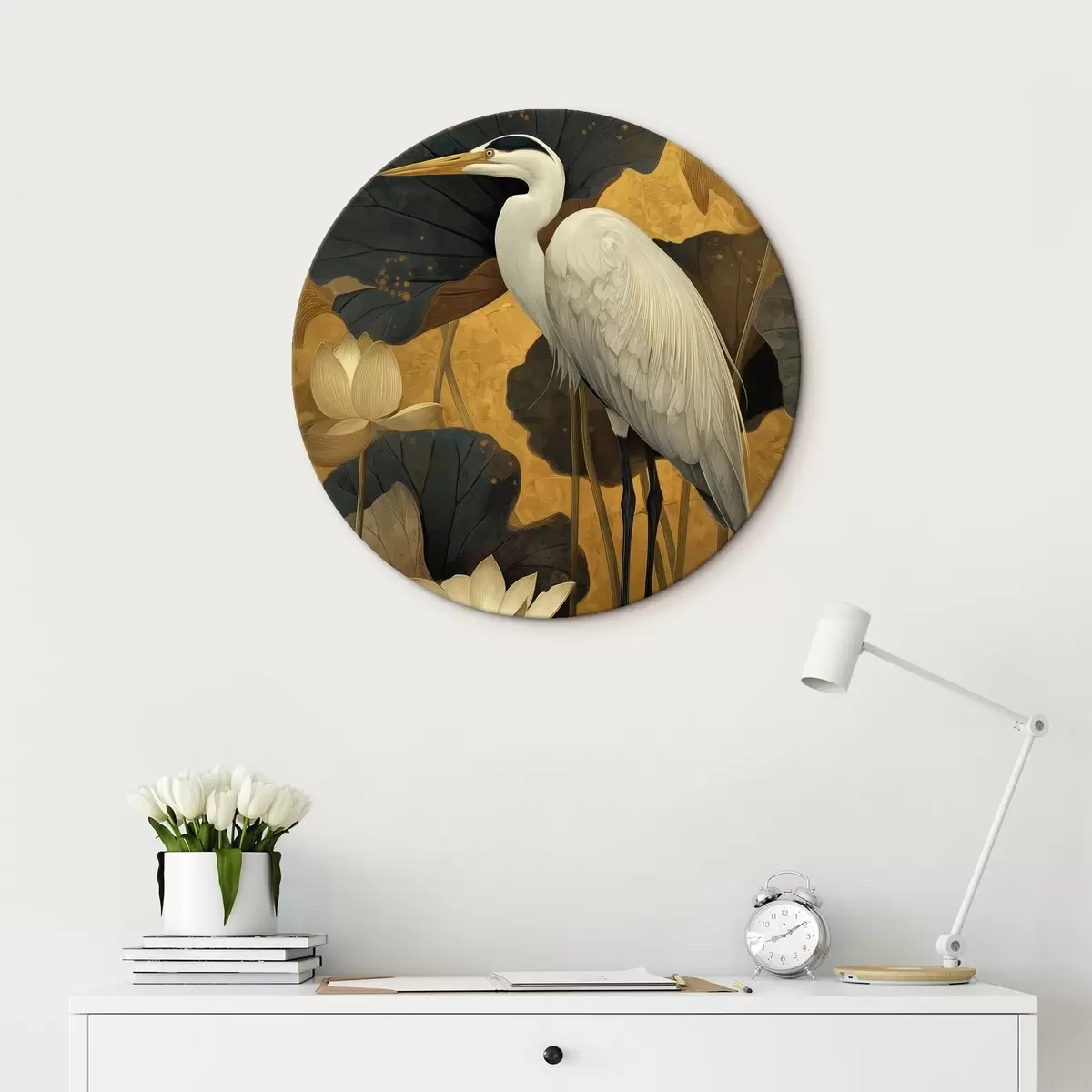 Nuotrauka Gervė tarp lotoso žiedų šiltame fone Nr r46148