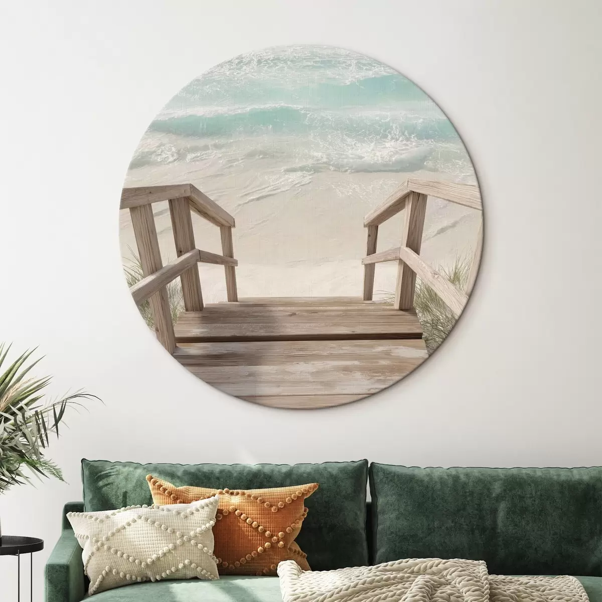 Apvalūs paveikslai Mediniai laiptai, vedantys į turkio spalvos paplūdimį r46163