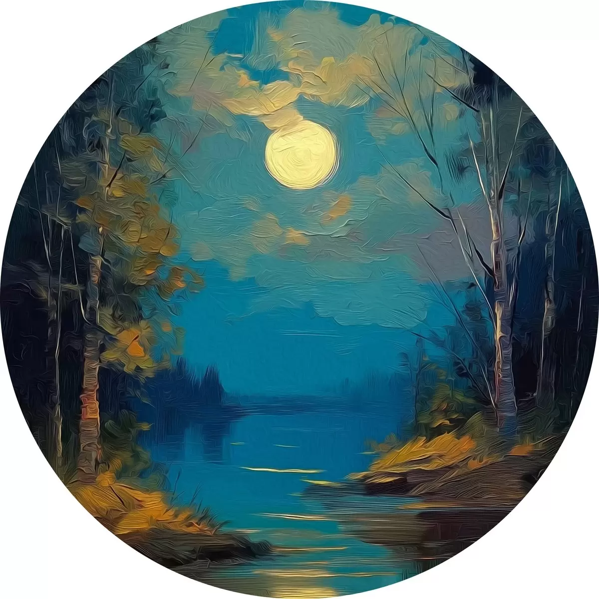 Nuotrauka Mėnulio šviesa virš ramios upės tarp pušų Nr r46164