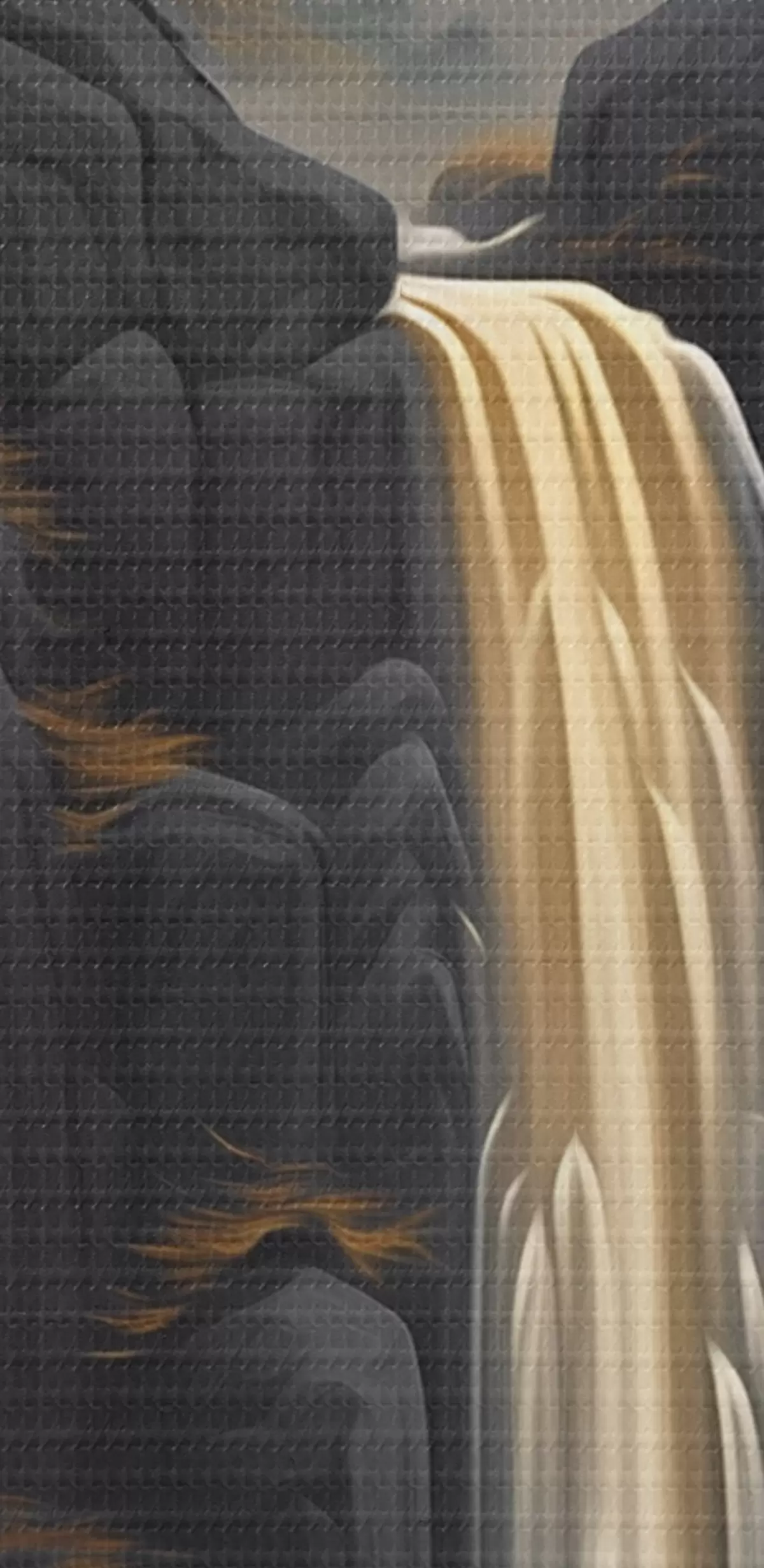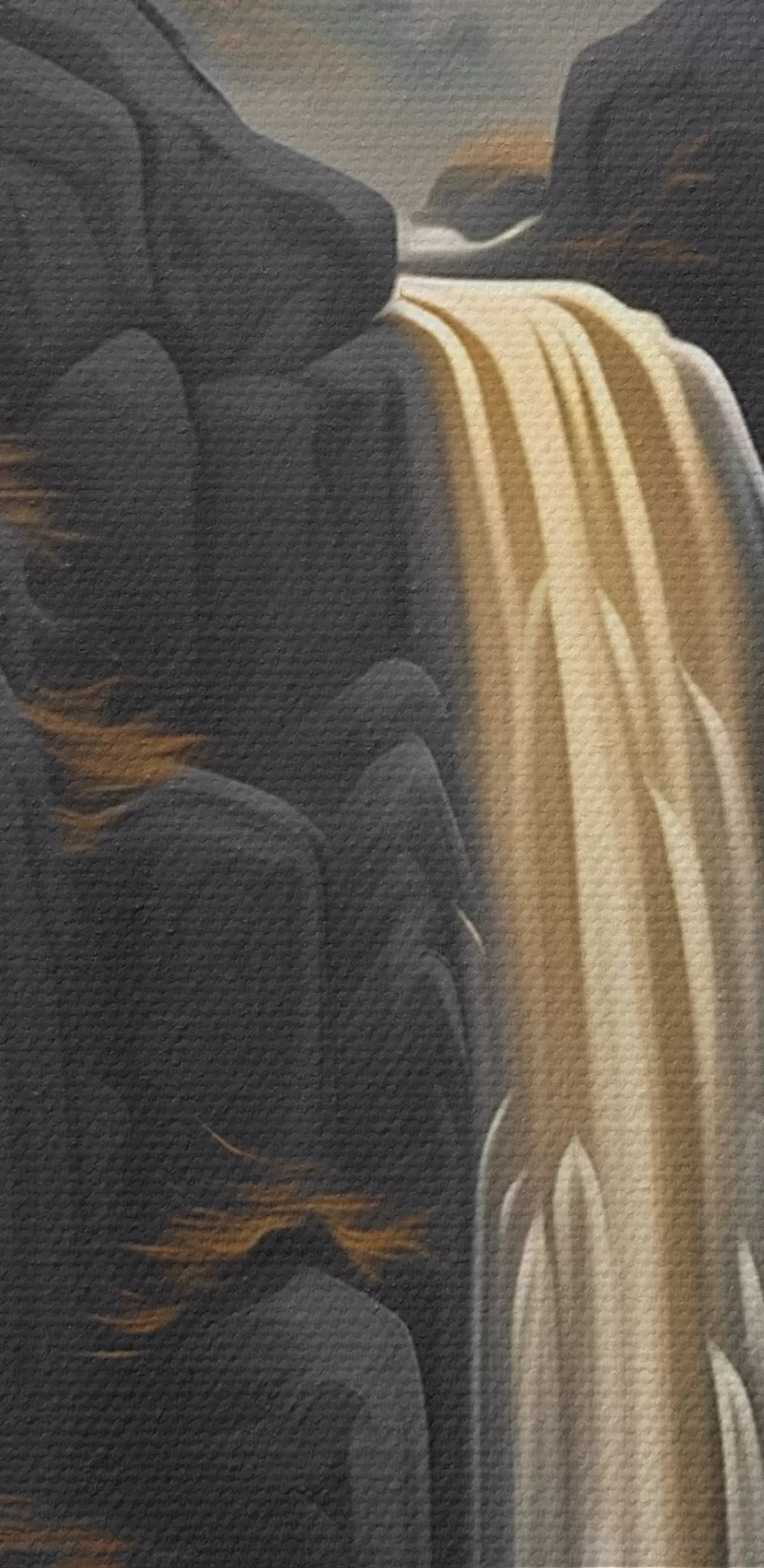 Nuotrauka Uolėtas kraštovaizdis su kriokliu šiltų saulėlydžio atspalvių fone Nr r46177