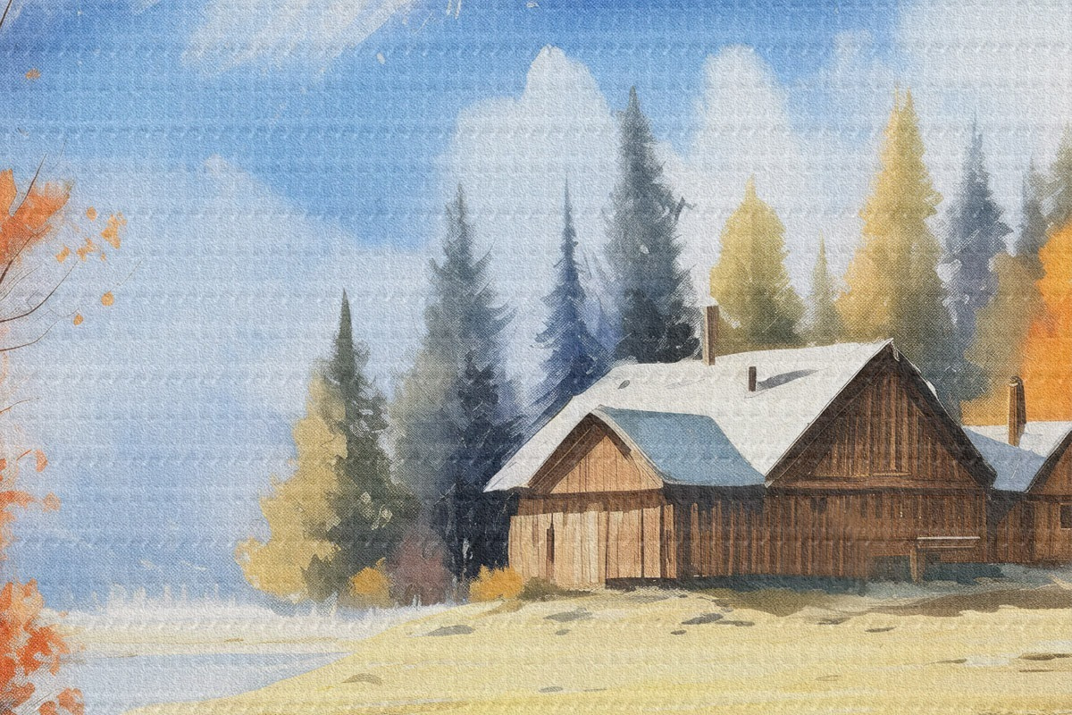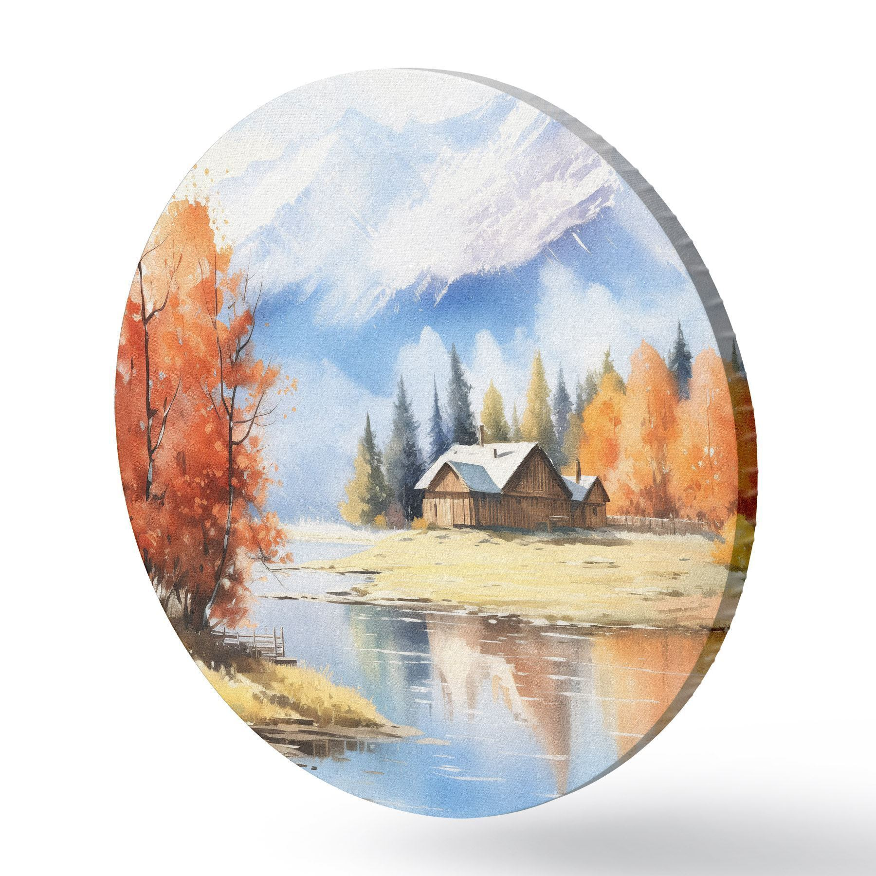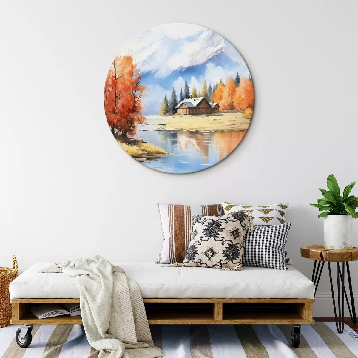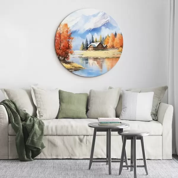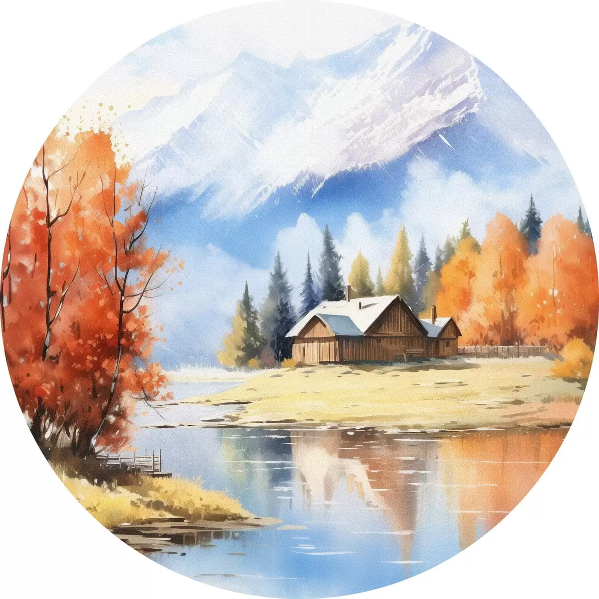 Nuotrauka Rudens peizažas prie ežero su namu ir kalnais Nr r46184