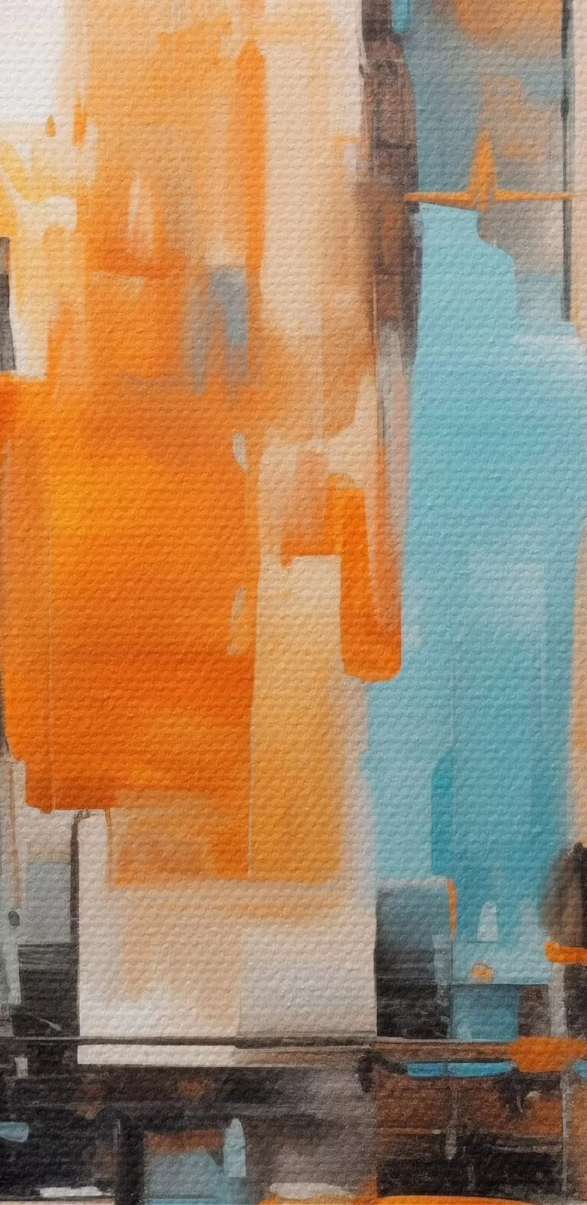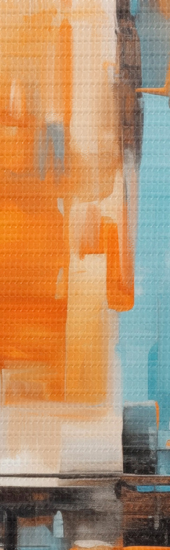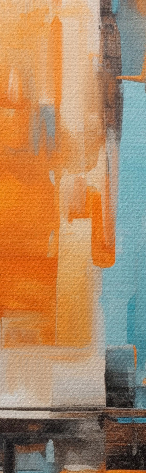Nuotrauka Abstraktus miesto peizažas su vertikaliais potėpiais oranžinių, mėlynų ir baltų atspalvių, tapybos stilius Nr r46267