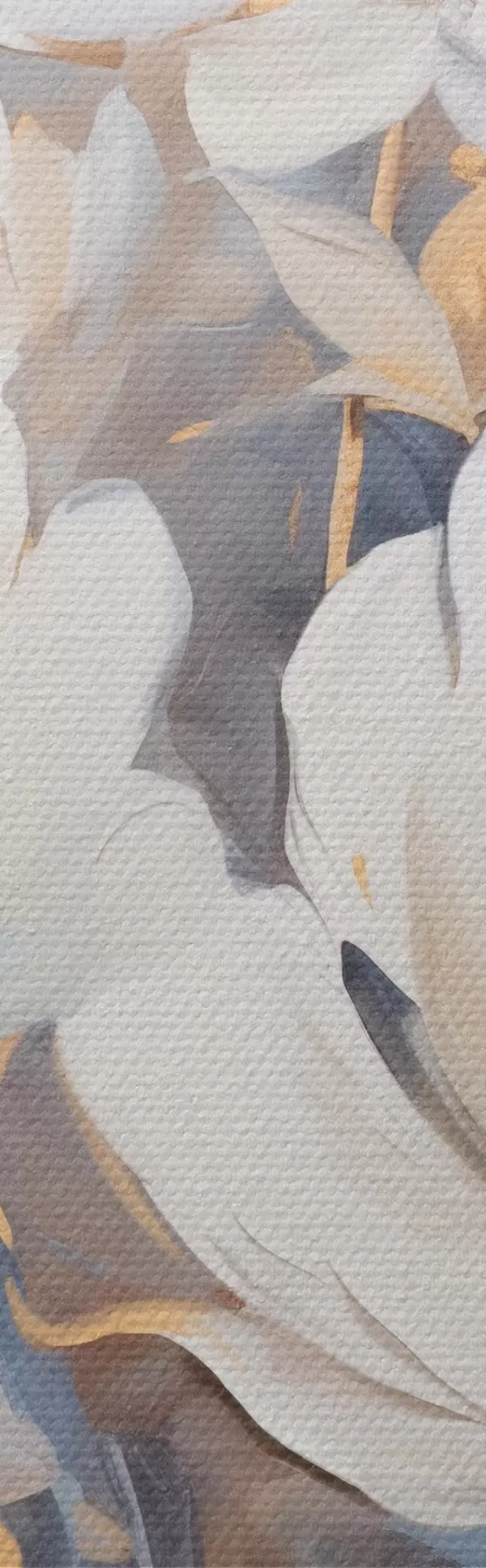 Nuotrauka Baltais žiedais ir mėlynais lapais puošti baltieji bijūnai, švelnūs potėpiai, šviesiai mėlynas fonas, gėlių kompozicija Nr r46270