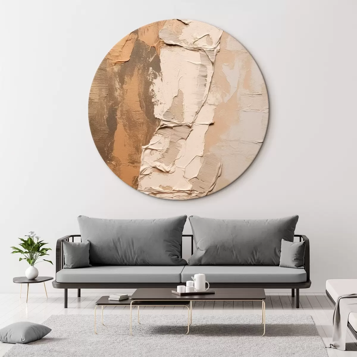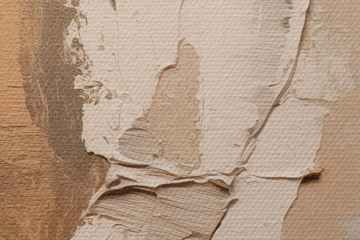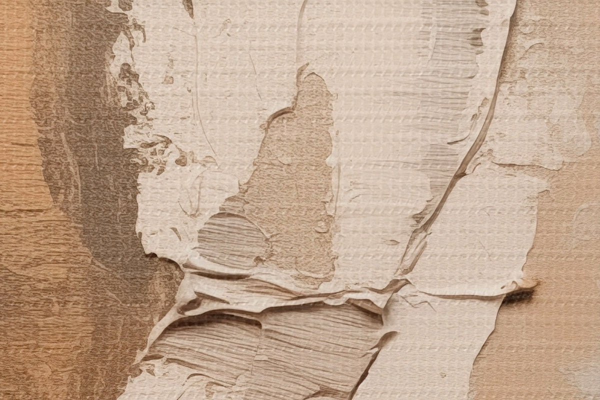 Nuotrauka Abstraktus paveikslas su storais potėpiais, smėlio ir rudos spalvos tonais, tekstūruotu paviršiumi, neutralių spalvų palete Nr r46272