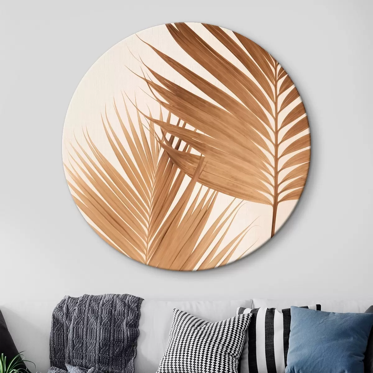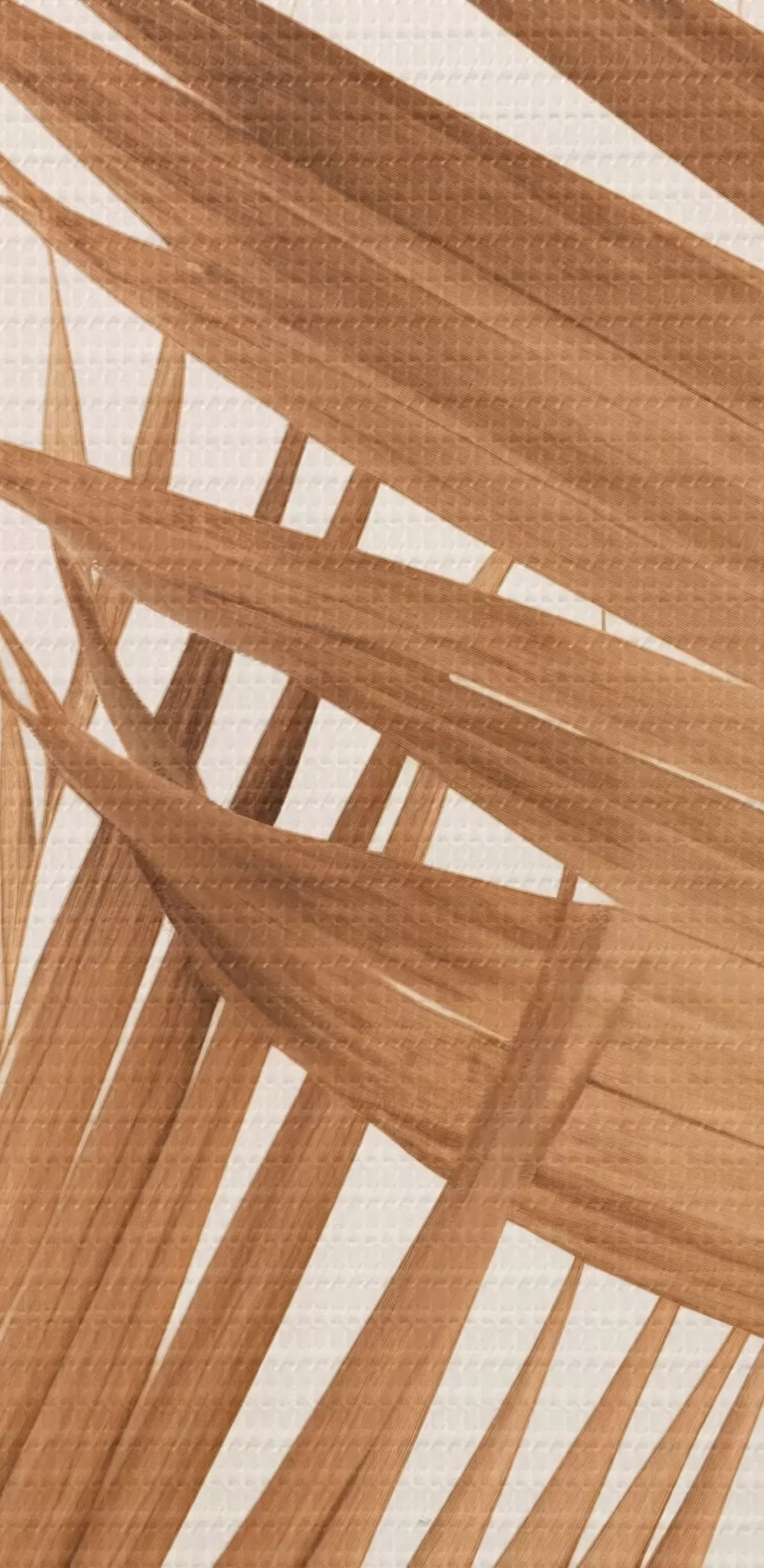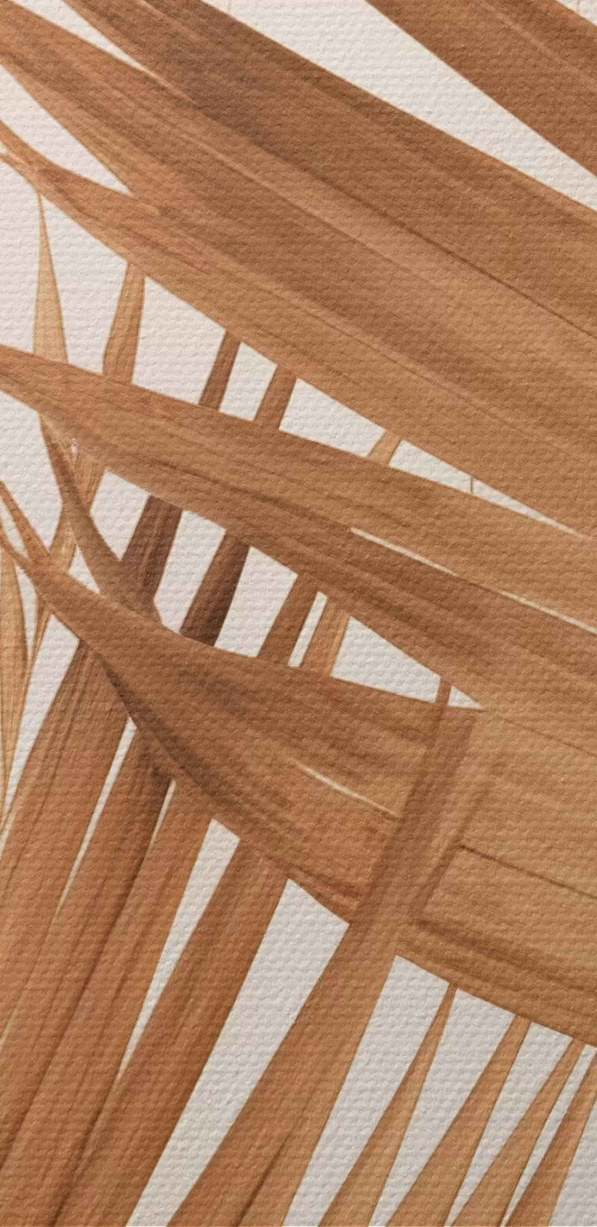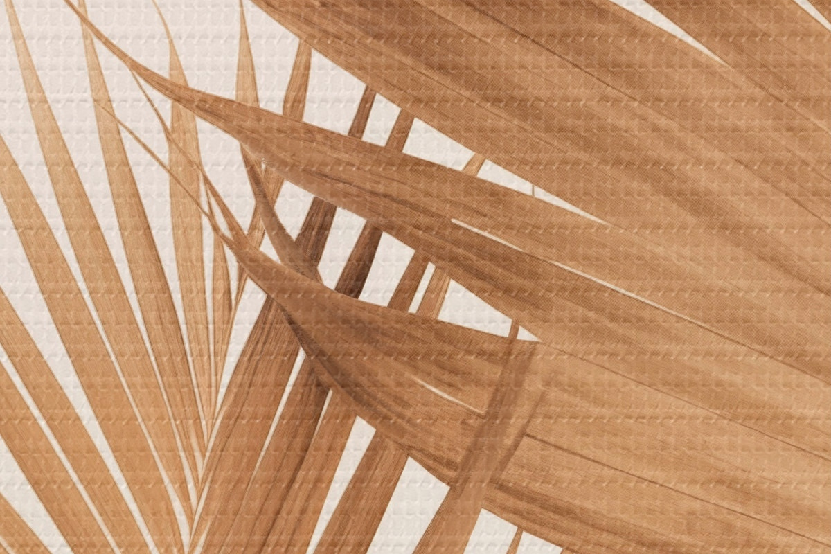 Nuotrauka Rudos spalvos palmių lapai, neutralus fonas, minimalistinis stilius, natūralus apšvietimas, tropinė atmosfera Nr r46274